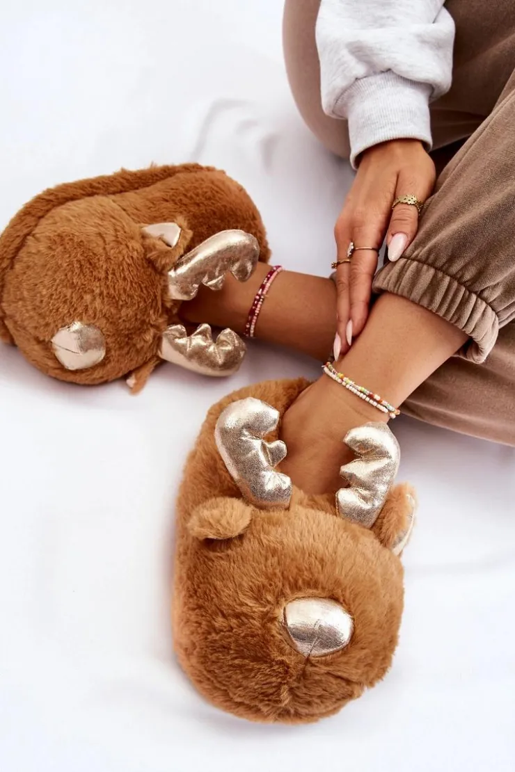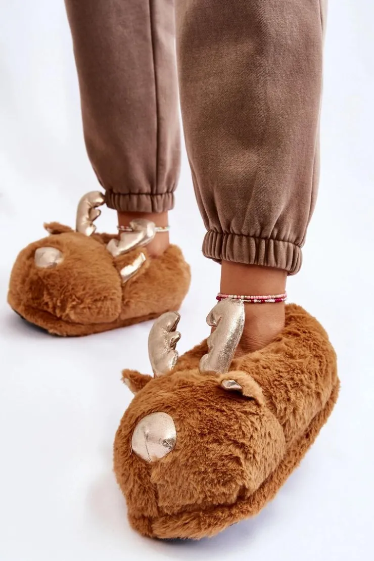 Świetne papcie damskie zostały wykonane z zewnątrz z eko futerka. Podeszwa z delikatnymi wypustkami. Papcie te świetnie izolują przed zimnem. Ten świąteczny model z dekoracją w postaci renifera świetnie sprawdzi się podczas zimowych dni. Wyściółka z materiału tekstylnego. Koniecznie powinnaś mieć ten model! Przy wyborze rozmiaru prosimy kierować tabelą rozmiarów.