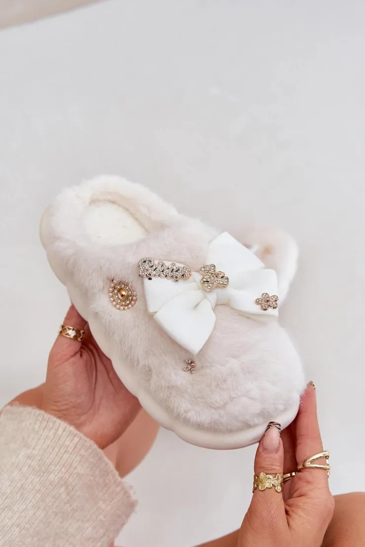Urocze futrzane kapcie, które łączą wygodę i styl! Miękkie futerko otula stopy, zapewniając ciepło i komfort. Dodatkowego wdzięku dodają przypinki oraz kokardka. Idealne do noszenia w domu, by poczuć się stylowo i przytulnie nawet w chłodne dni. Przy wyborze rozmiaru prosimy sugerować się tabelą rozmiarów.