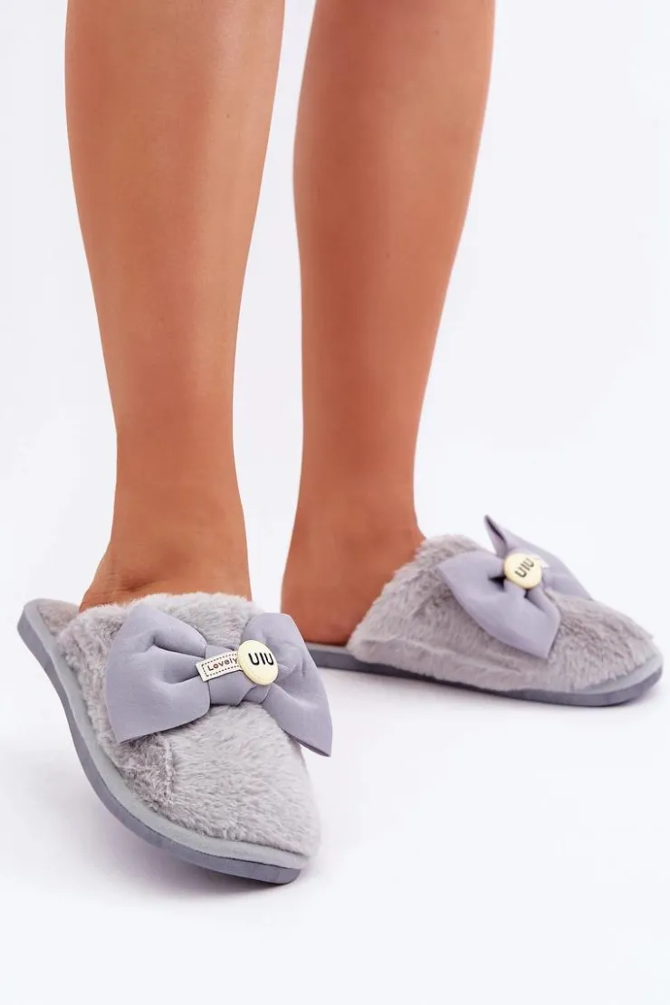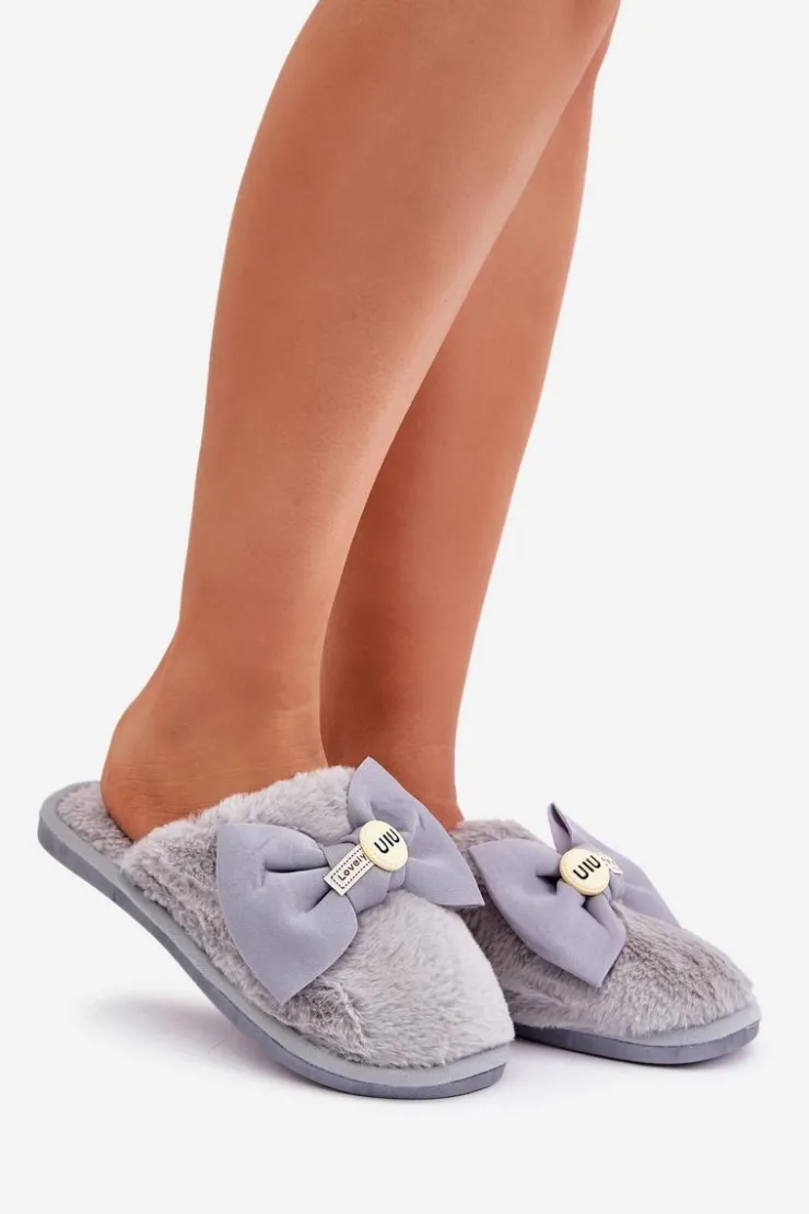 Ciepłe kapcie damskie z miękkim futerkiem i uroczą kokardą, które zapewnią komfort i przytulność w chłodne wieczory. Doskonałe na relaks przed telewizorem, łączą funkcjonalność z uroczym, kobiecym stylem. Idealne do noszenia w domu, zapewniając ciepło i wygodę! .Przy wyborze rozmiaru prosimy sugerować się tabelą rozmiarów.