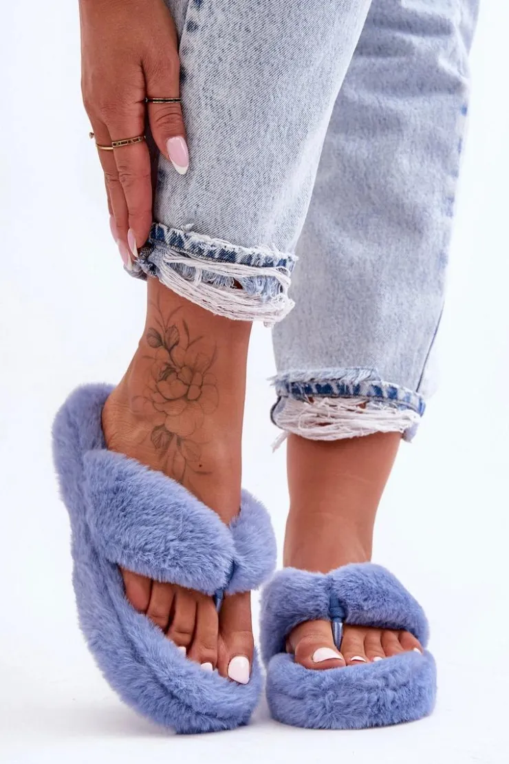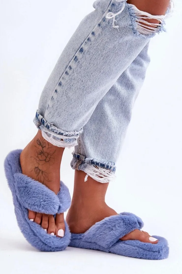 Boto Kapcie Klasyczne|Klapki Z Futerkiem*Damskie Futrzane Klapki Papcie Niebieskie Elma