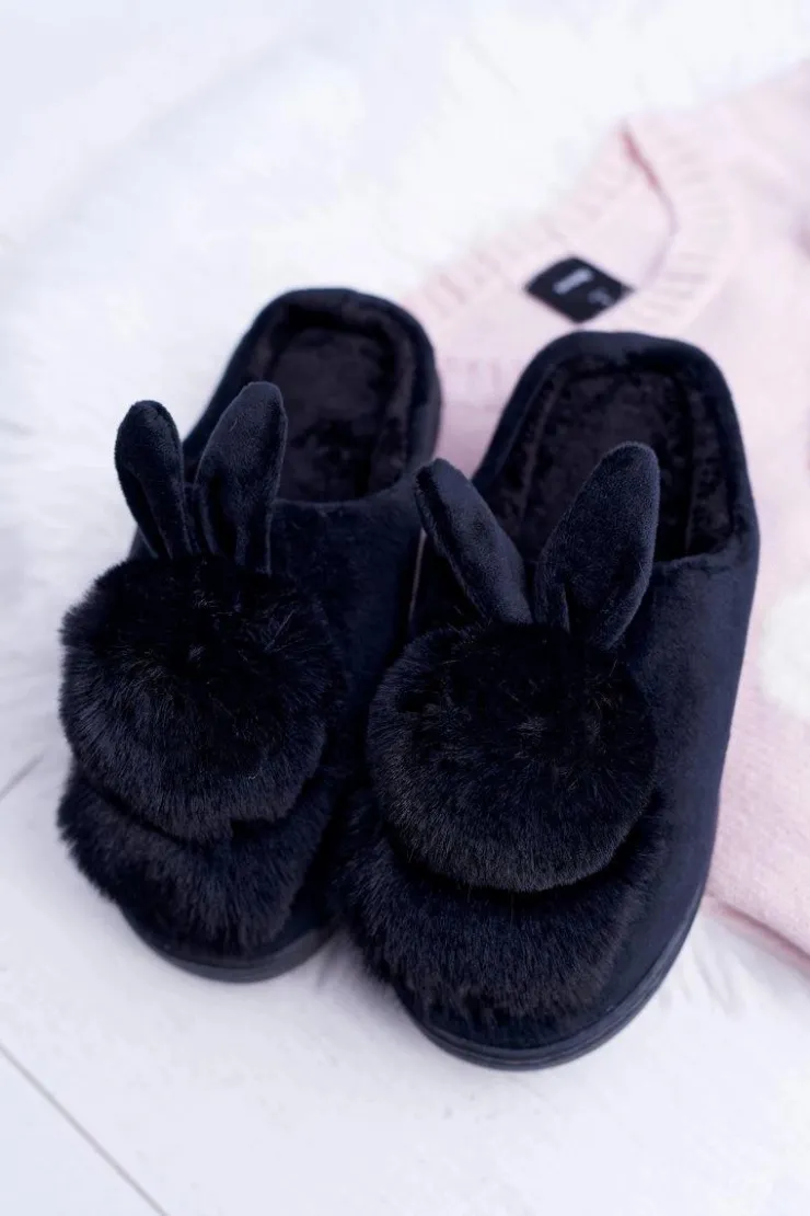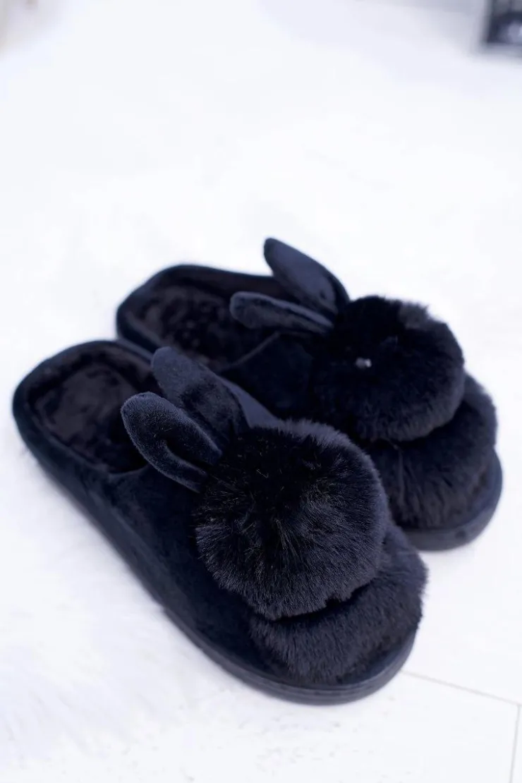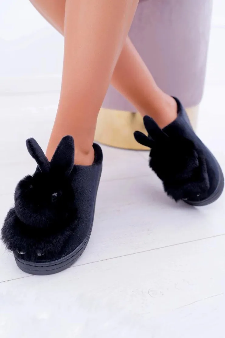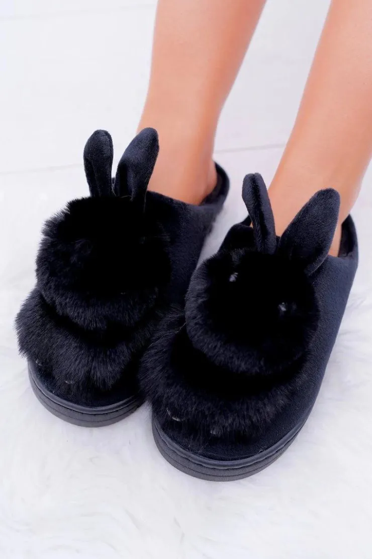 Boto Kapcie Klasyczne*Papcie Damskie Klasyczne Z Królikiem Czarne Howi