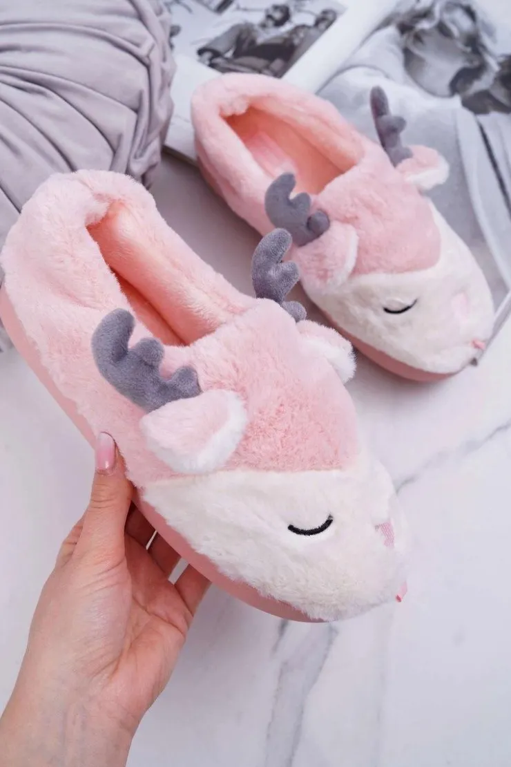 Boto Kapcie Klasyczne*Papcie Damskie Z Futerkiem Renifery Róż Reindeer