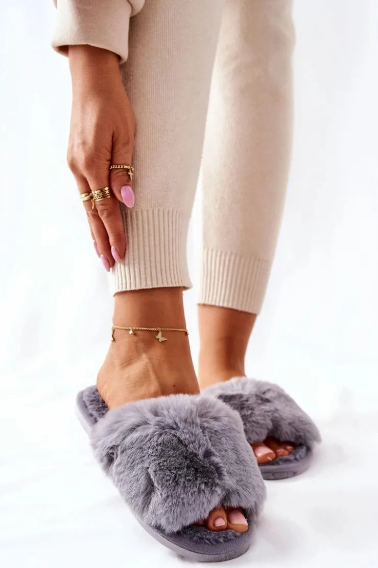 Boto Kapcie Klasyczne*Papcie Damskie Z Futerkiem Szare Trusted