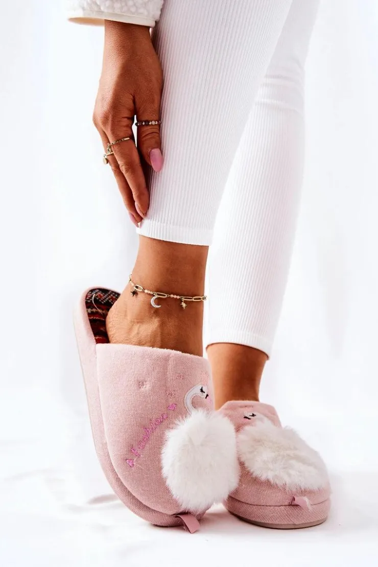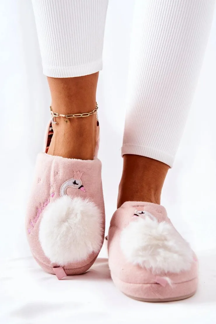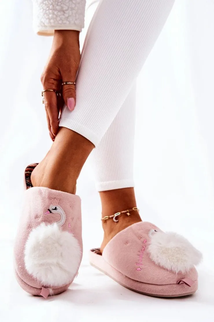 Boto Kapcie Klasyczne*Papcie Ocieplane Łabędź Jasnoróżowe Reya Różowy