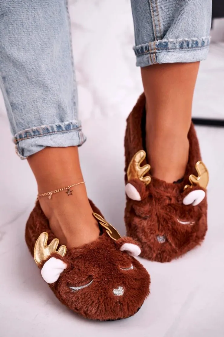 Boto Kapcie Klasyczne*Świąteczne Ocieplane Futrzane Papcie Brązowe Jingle Bells