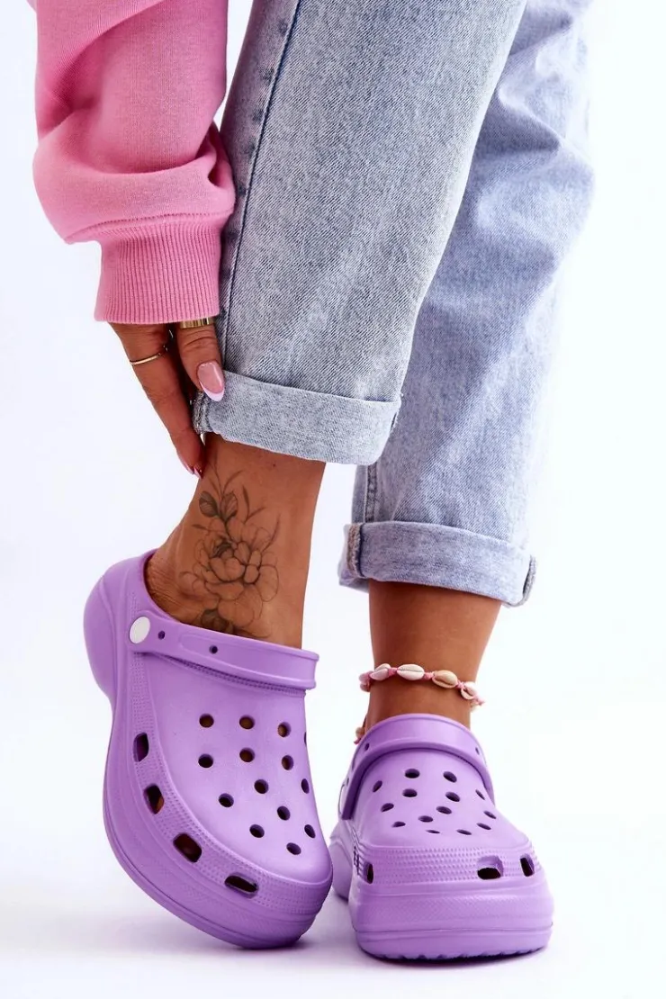 Damskie klapki wykonane z wysokojakościowego, piankowego tworzywa. Wkładka z wypustkami sprawia, że stopy nie będą już takie zmęczone, nawet po całym dniu użytkowania. Ruchomy paseczek zabezpiecza przed przesuwaniem się stopy. Buty zostały osadzone na masywnym obcasie oraz platformie. Idealny model do pracy w ogrodzie czy użytkowania w domu zamiast papci. Otwory w cholewce pozwalają na odpowiednią wentylację obuwia. Przy wyborze rozmiaru prosimy sugerować się tabelą rozmiarów.