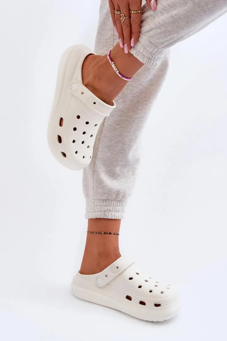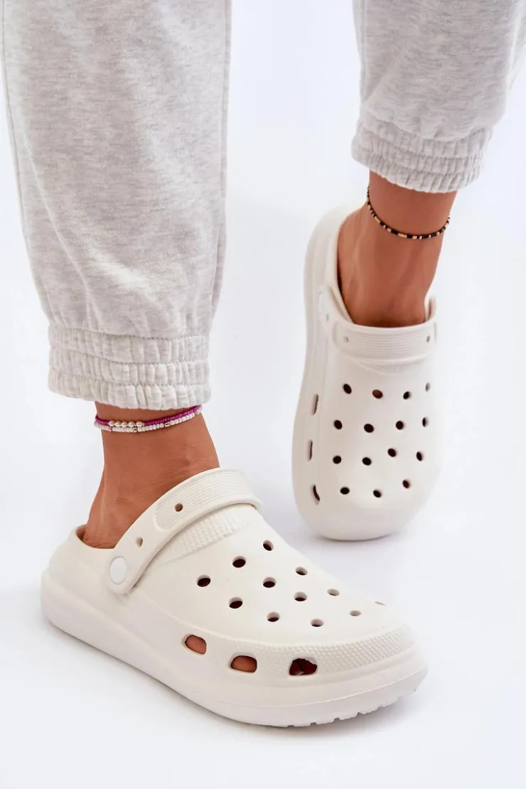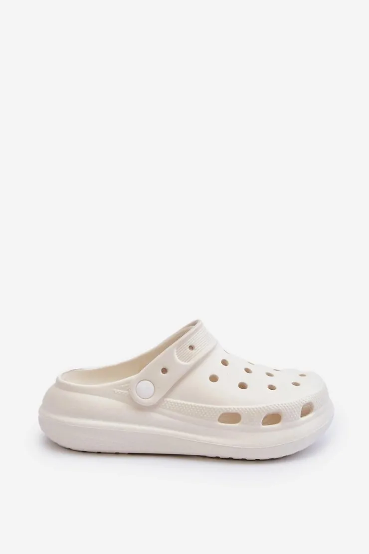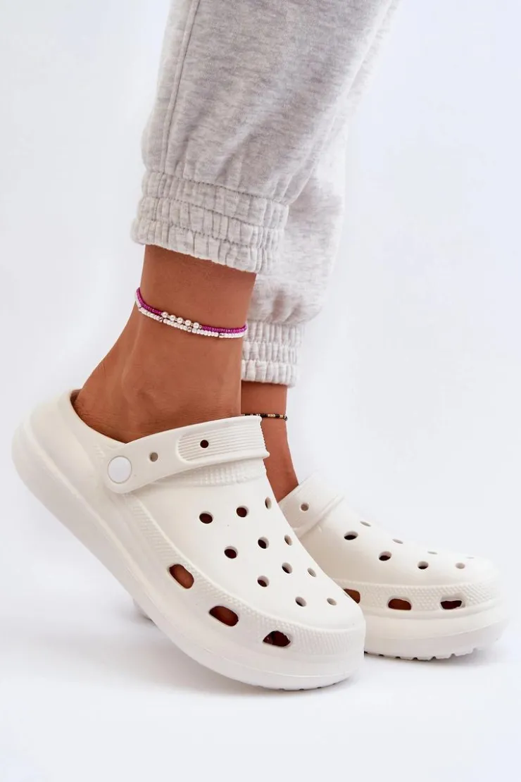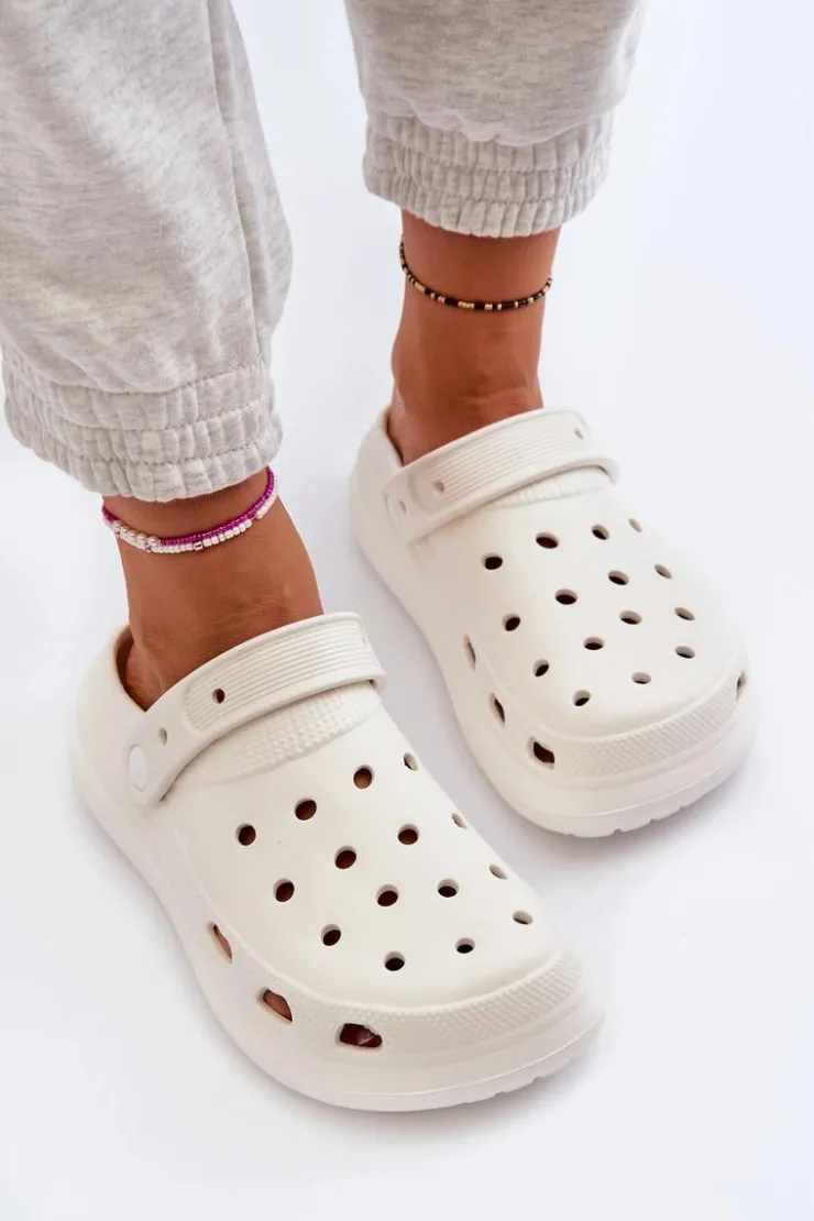 Klapki damskie wykonane z lekkiego, piankowego materiału. Ruchomy pasek zapewnia stabilność i chroni przed ślizganiem się stopy. Platforma zapewnia wygodę podczas noszenia. Dodatkowe otwory w cholewce pozwalają na odpowiedni przepływ powietrza, zapewniając komfort nawet podczas gorących dni. Przy wyborze rozmiaru prosimy sugerować się tabelą rozmiarów.