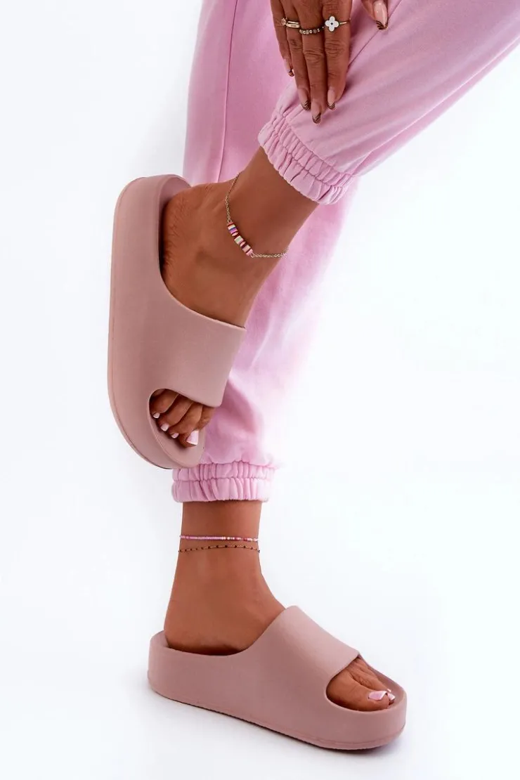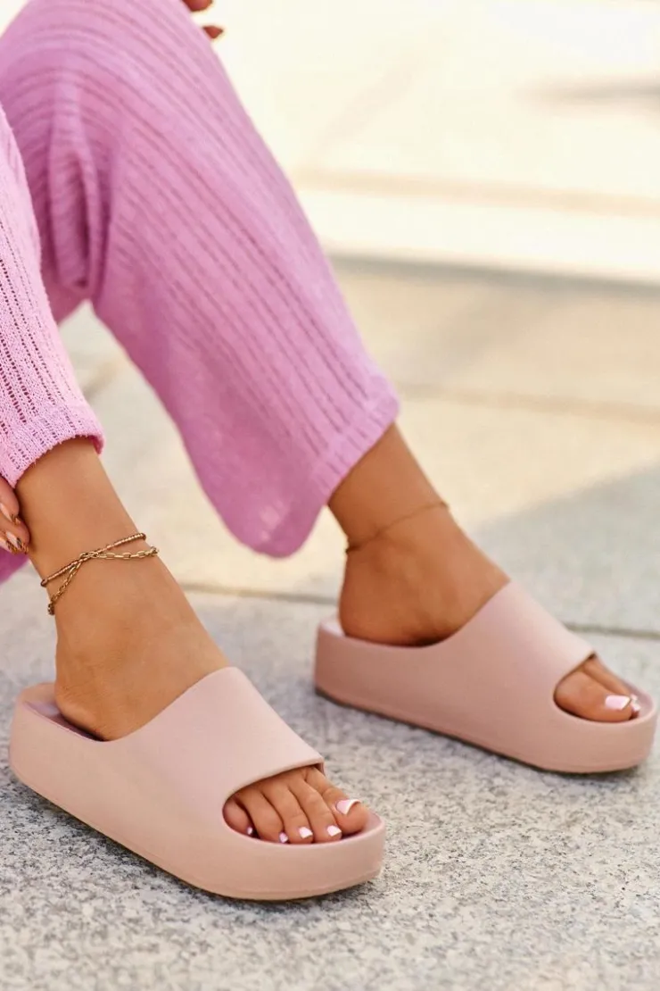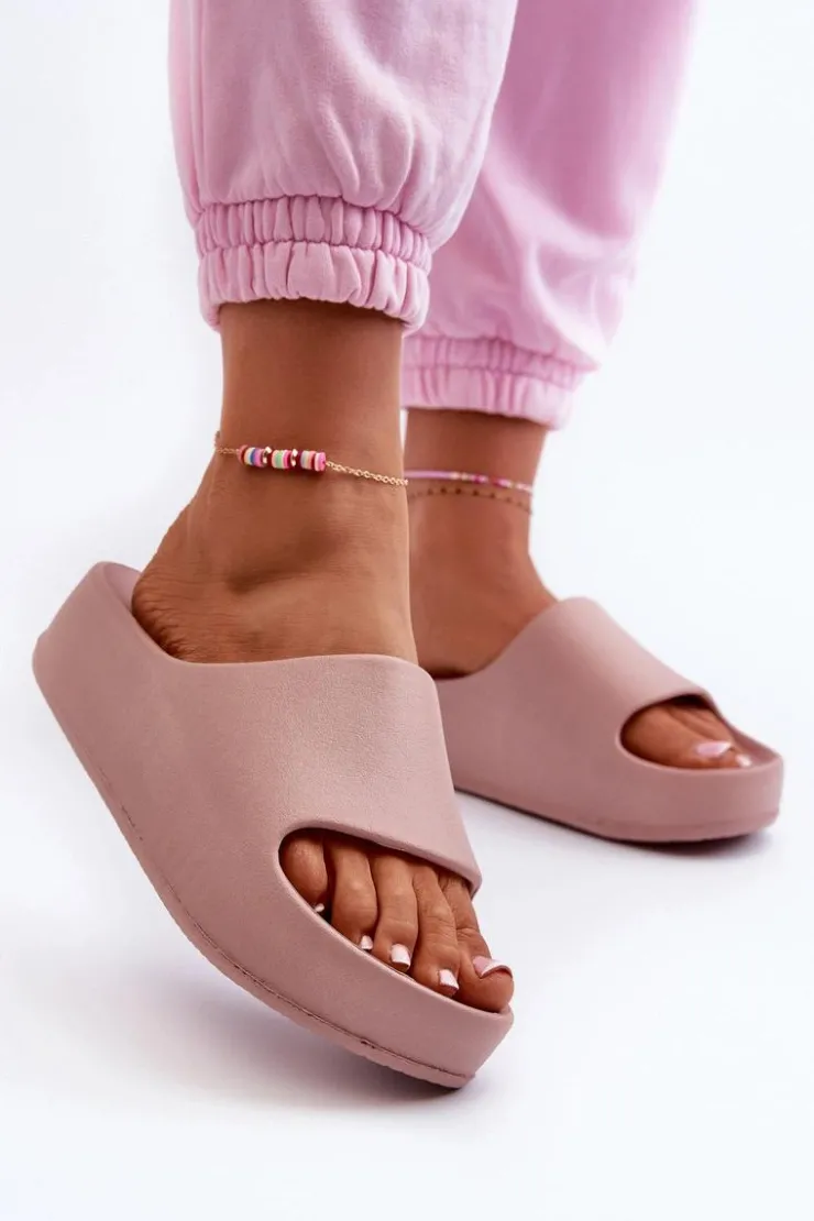 Damskie klapki na masywnej platformie. Wykonane z lekkiej pianki, to doskonały wybór na basen. Zapewniają wygodę i stabilność, idealne na relaksujące dni przy wodzie. Przy wyborze rozmiaru prosimy kierować się tabelą rozmiarów.