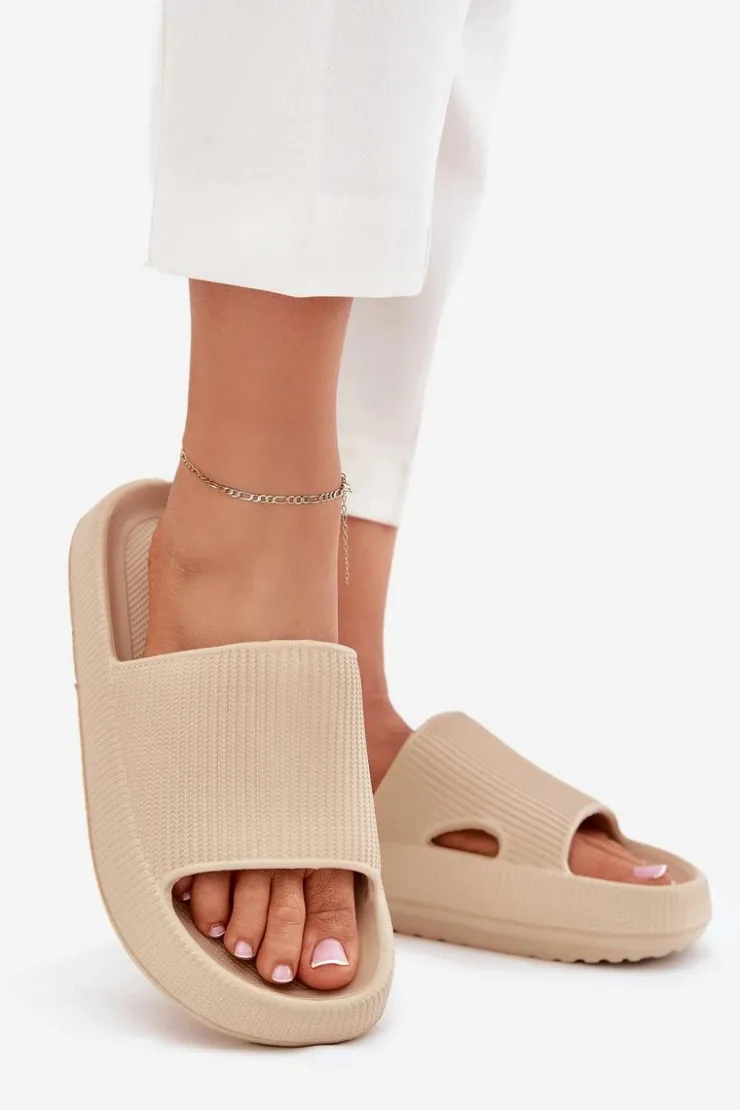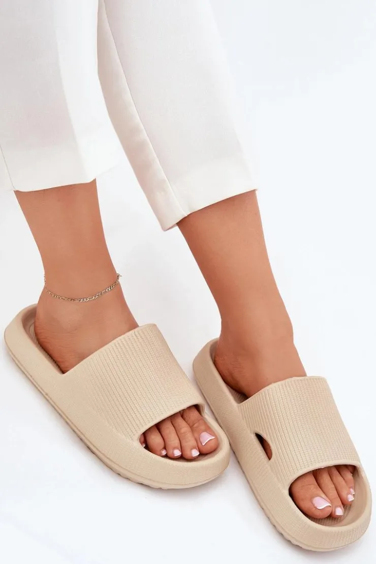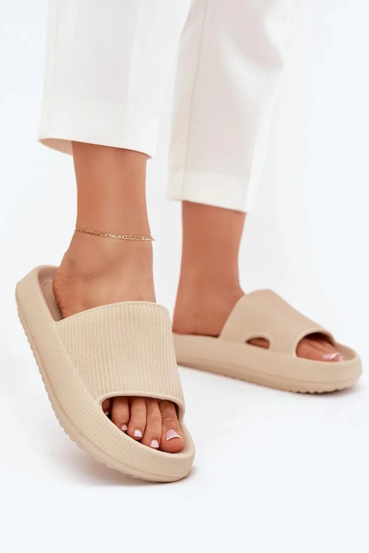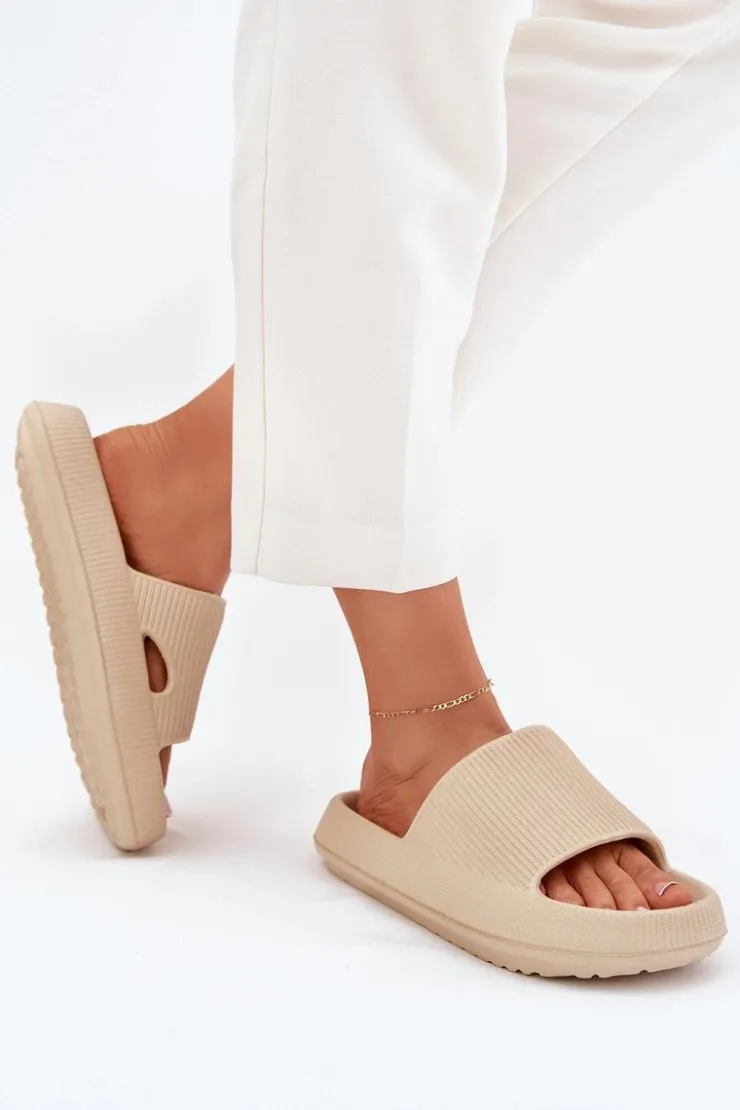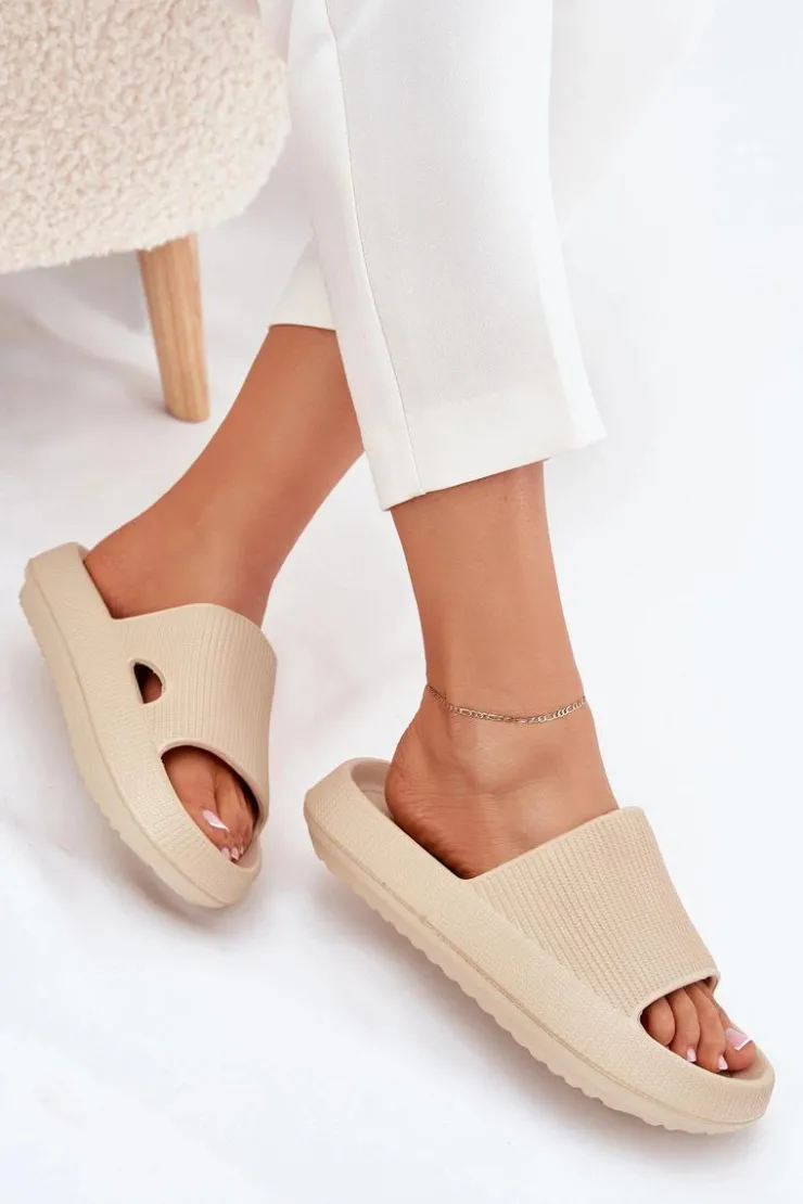 Klapki damskie wykonane z piankowego tworzywa. Osadzone na platformie, to idealny wybór na ciepłe dni. Pasek z wycięciem na boku. Doskonałe na plażę, basen i inne wakacyjne wyjazdy, zapewniają komfort i lekkość przez cały dzień. Przy wyborze rozmiaru prosimy kierować się tabelą rozmiarów.