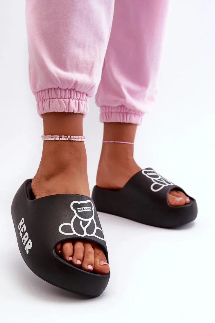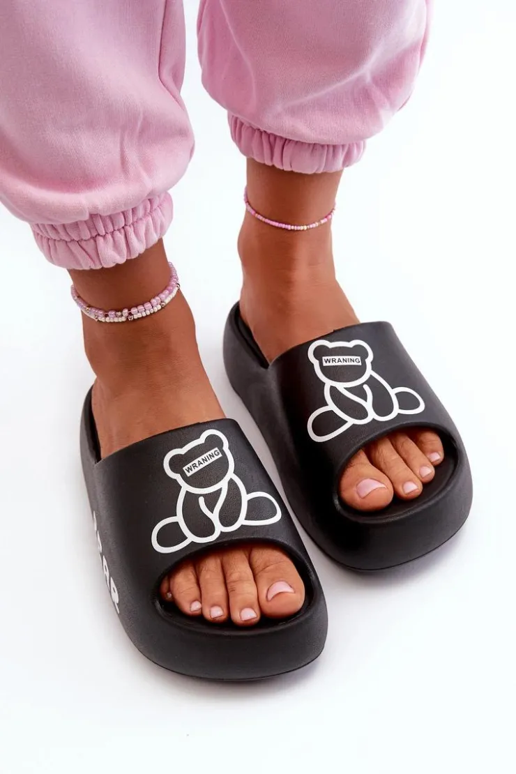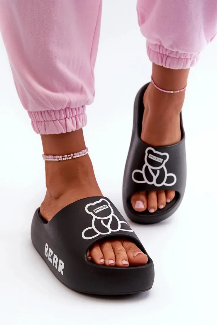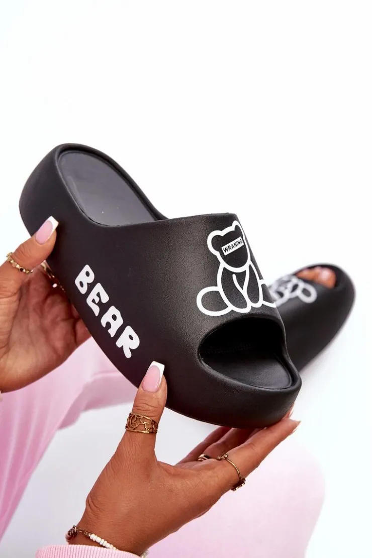 Lekkie damskie klapki na basen wykonane z piankowego tworzywa. Osadzone na masywnej podeszwie. Te urocze klapki zdobi nadruk z motywem misia, który dodaje im wyjątkowego charakteru. Idealne do codziennego użytku na, łączą wygodę i styl w jednym. Przy wyborze rozmiaru prosimy sugerować się tabelą rozmiarów.