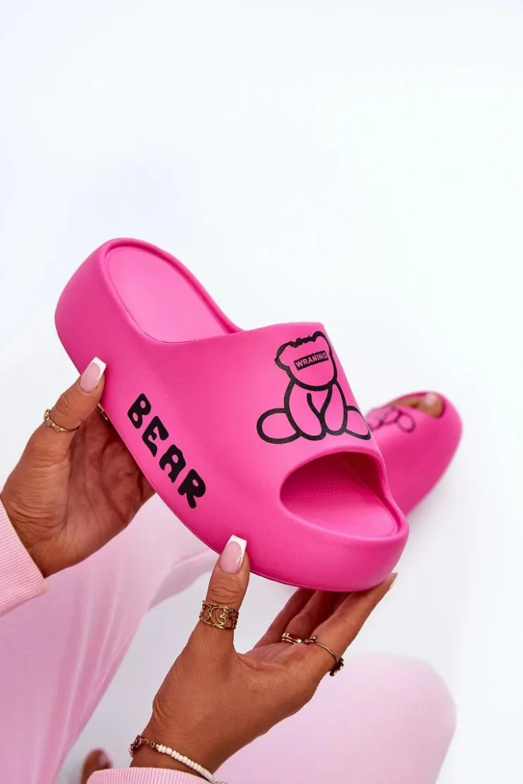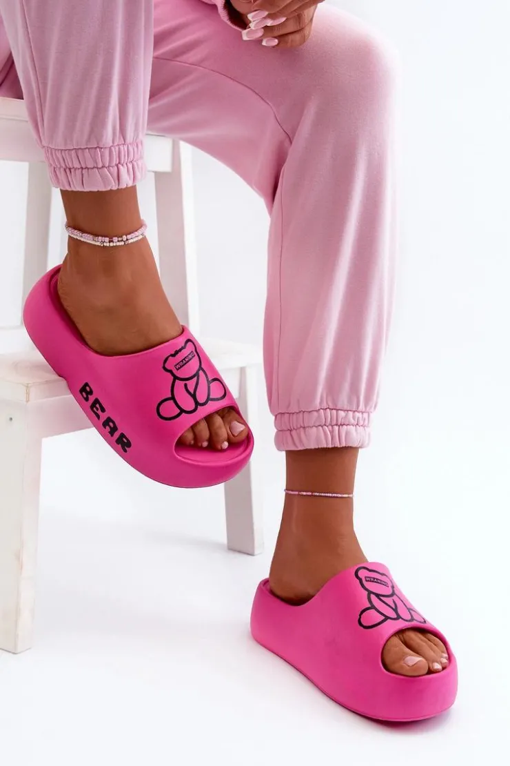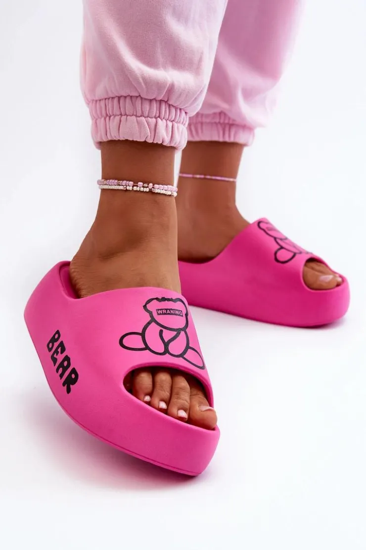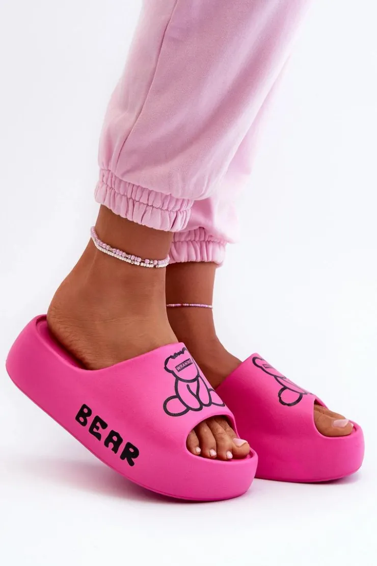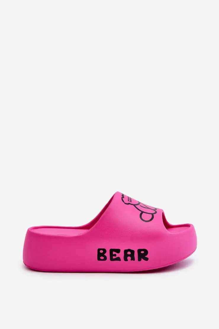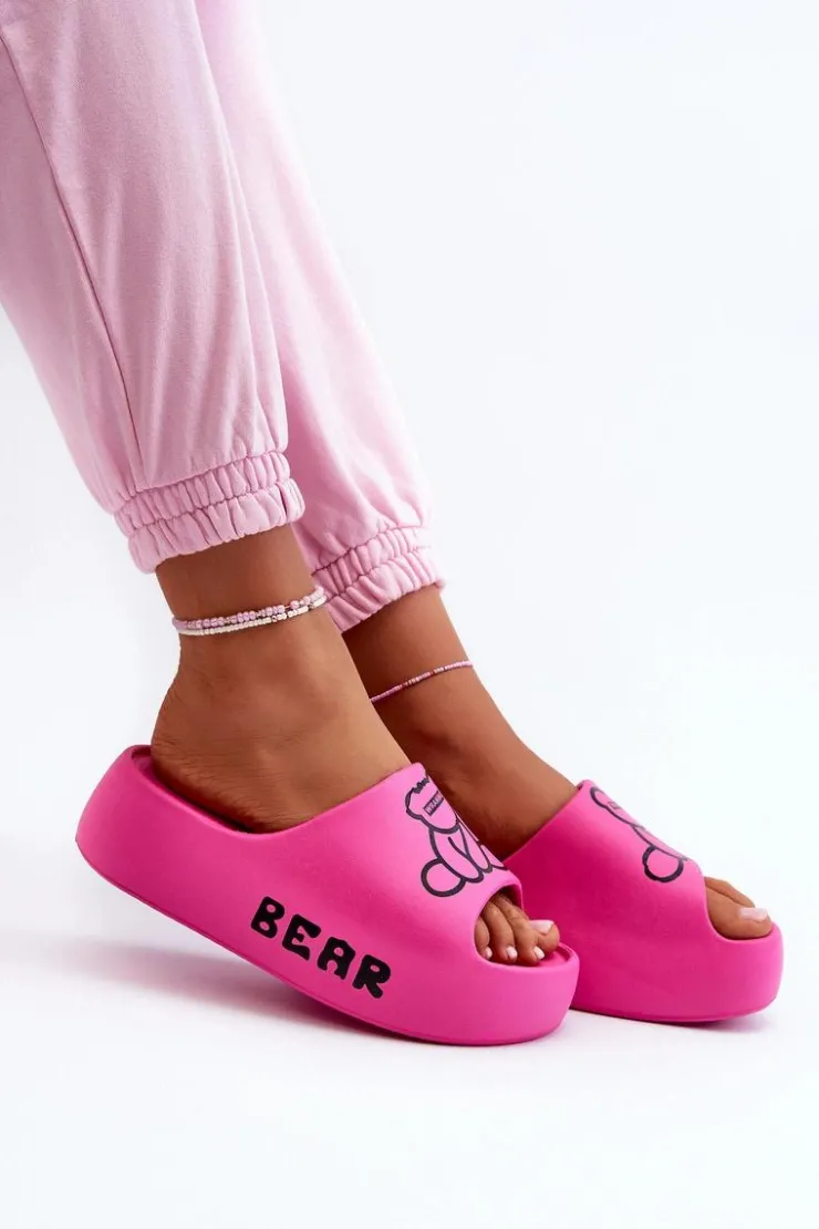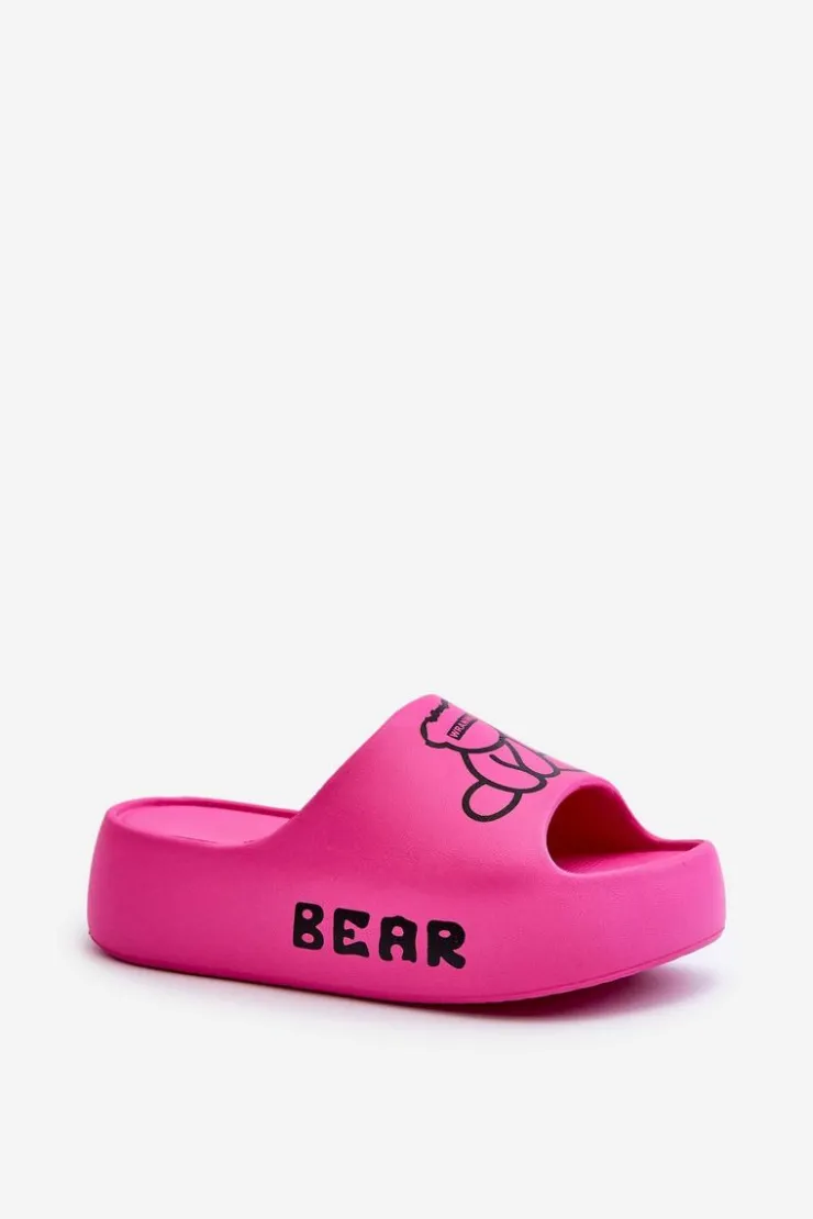 Boto Klapki Basenowe|Klapki Na Platformie*Piankowe Klapki Damskie Na Masywnej Podeszwie Z Misiem Fuksja Lamira Różowy