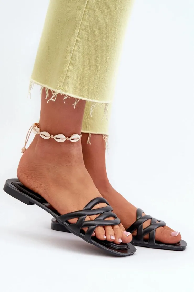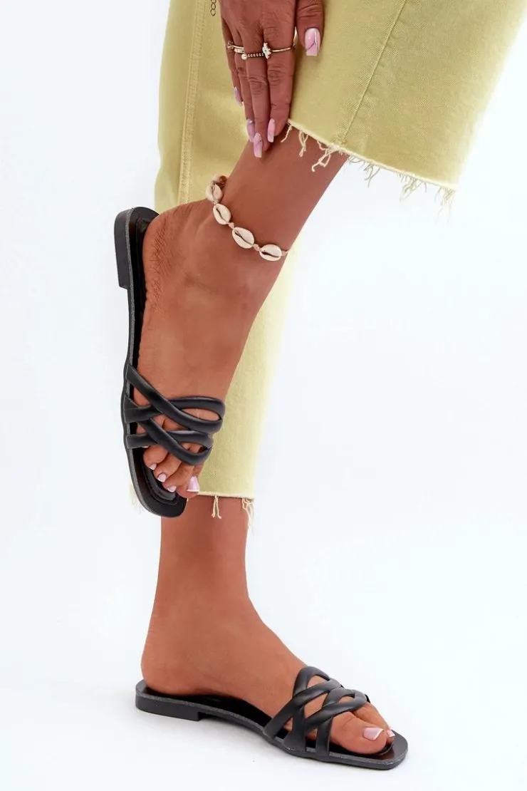 Klapki damskie wykonane z eko skóry. Płaski obcas sprawia, że są niezwykle wygodne podczas długich spacerów czy letnich wypadów. Modny design pozwala na swobodne łączenie ich zarówno z sukienkami, jak i spodniami, nadając letniej stylizacji niepowtarzalnego uroku. Model ten będzie pasować na wąską stopę. Przy wyborze rozmiaru prosimy sugerować się tabelą rozmiarów.