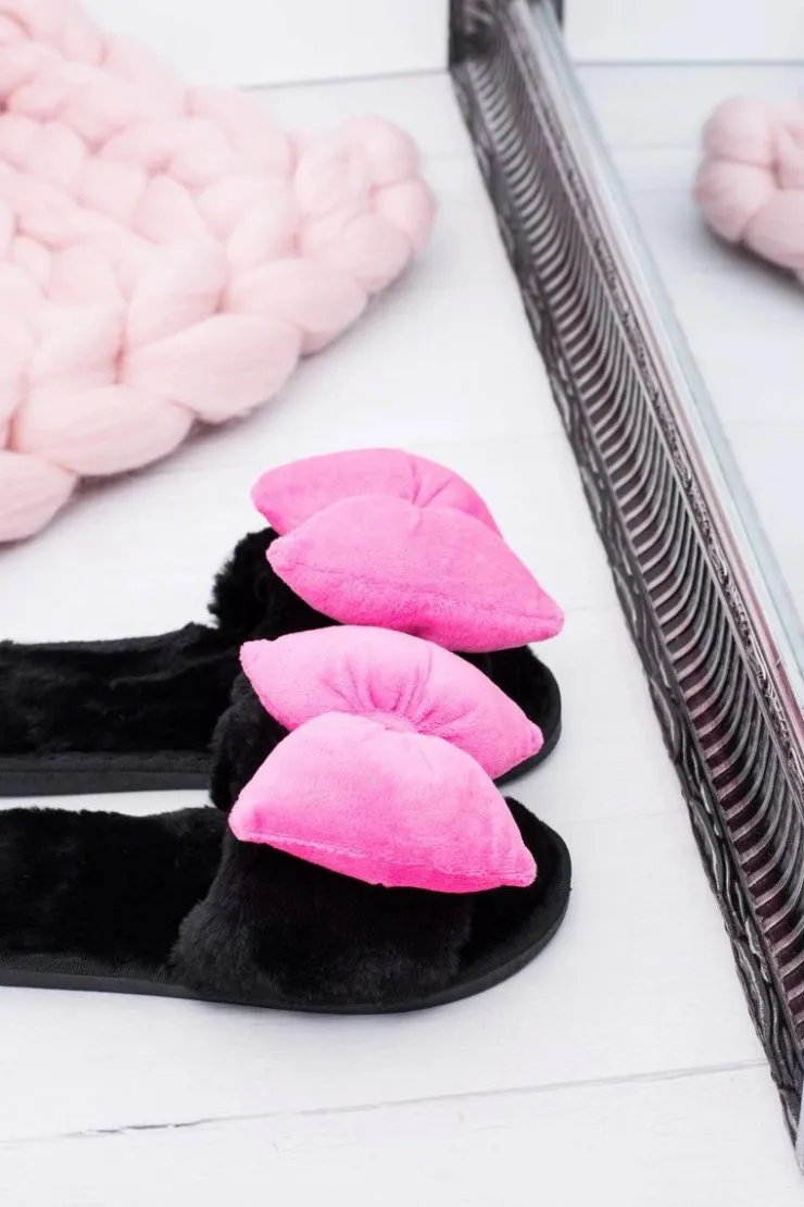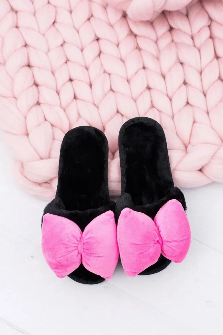 Boto Klapki Damskie Klasyczne*Czarne Damskie Klapki Lu Boo Duże Różowe Kokardy Floppy