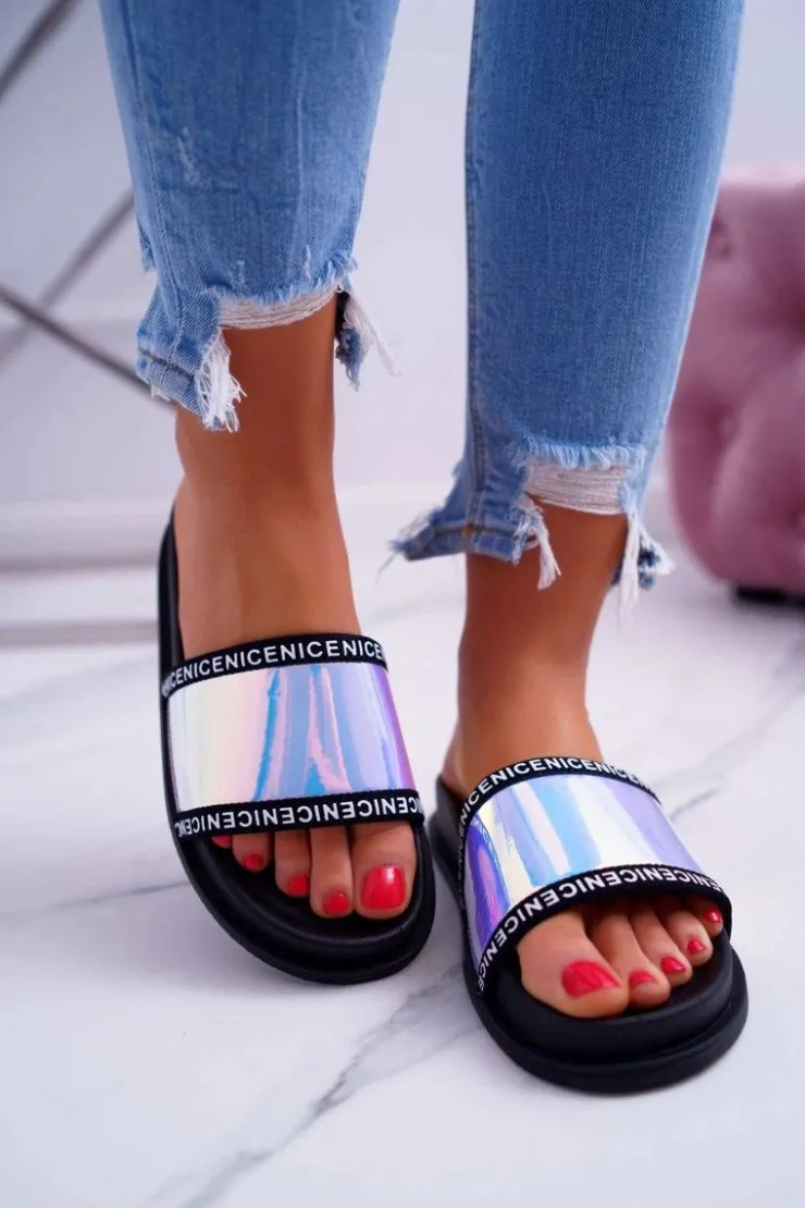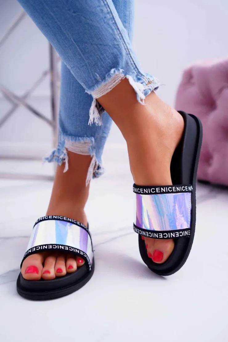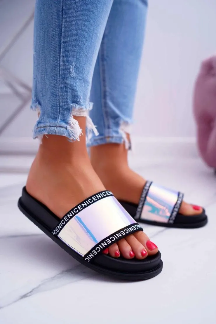 Boto Klapki Damskie Klasyczne*Damskie Klapki Czarne Opalizujące Nerdo