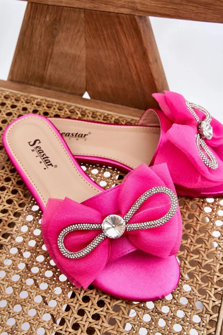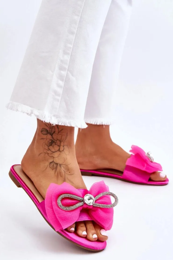 Boto Klapki Damskie Klasyczne*Damskie Klapki Z Kokardą I Cyrkoniami Fuksja Jolene