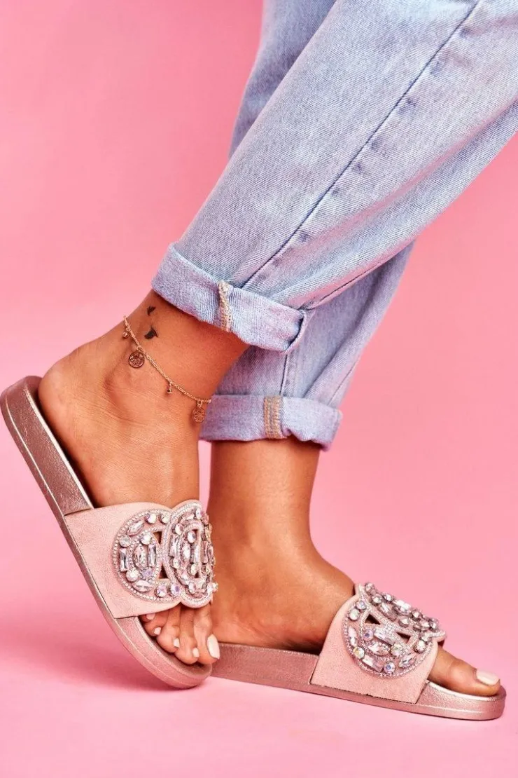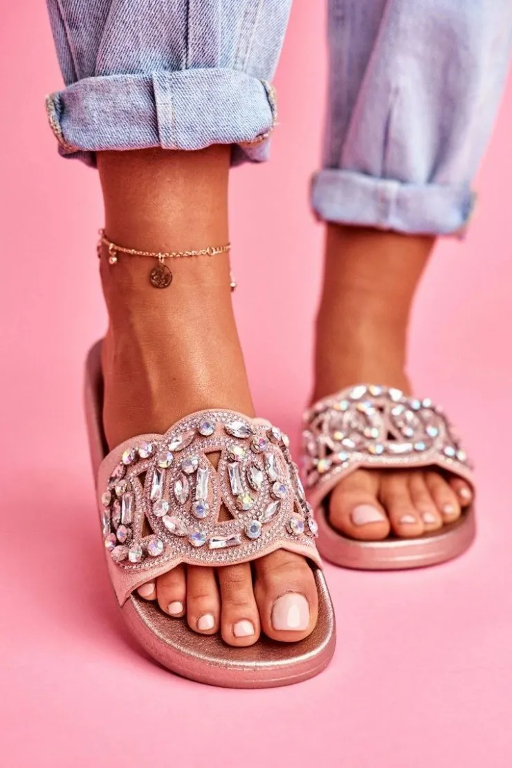Boto Klapki Damskie Klasyczne*Damskie Klapki Z Kryształkami Różowe Złoto Audrey