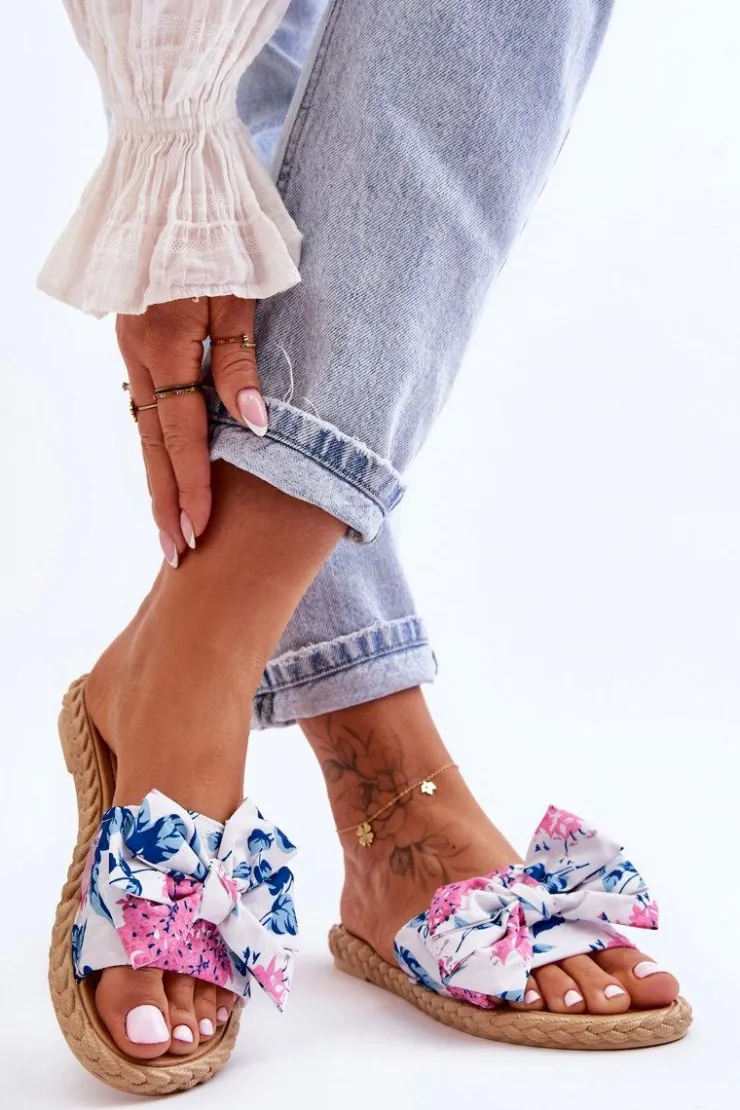 Piękne, damskie klapki zostały wykonane z zewnątrz z materiału tekstylnego w kwiecisty wzór. Klapki zostały wykonane z gumowego tworzywa. Osadzone na płaskim obcasie. Model ten jest wsuwany. Klapki cudnie będą prezentować się z sukienkami czy spódniczkami. Idealne obuwie na upalne dni! Przy wyborze rozmiaru prosimy sugerować się tabelą rozmiarów.