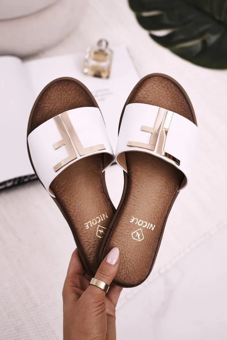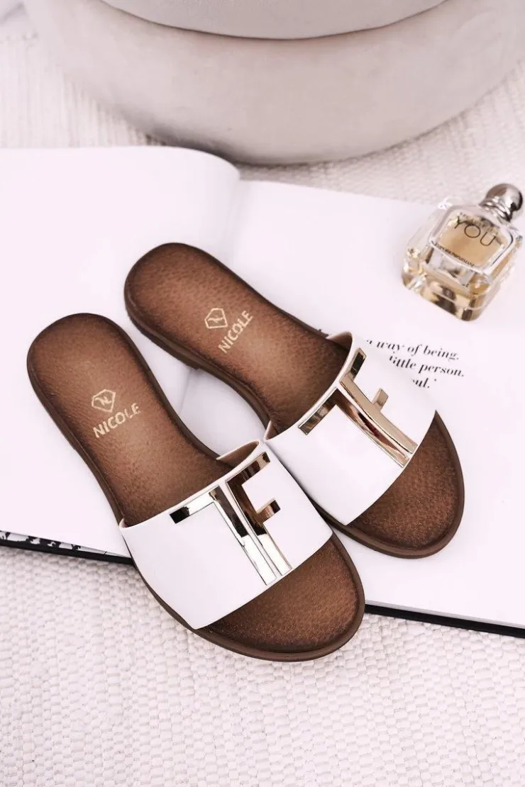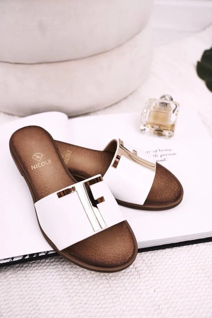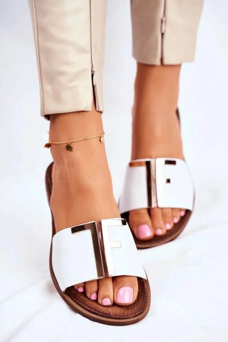 Boto Klapki Damskie Klasyczne*Damskie Klasyczne Skórzane Klapki Białe Adele
