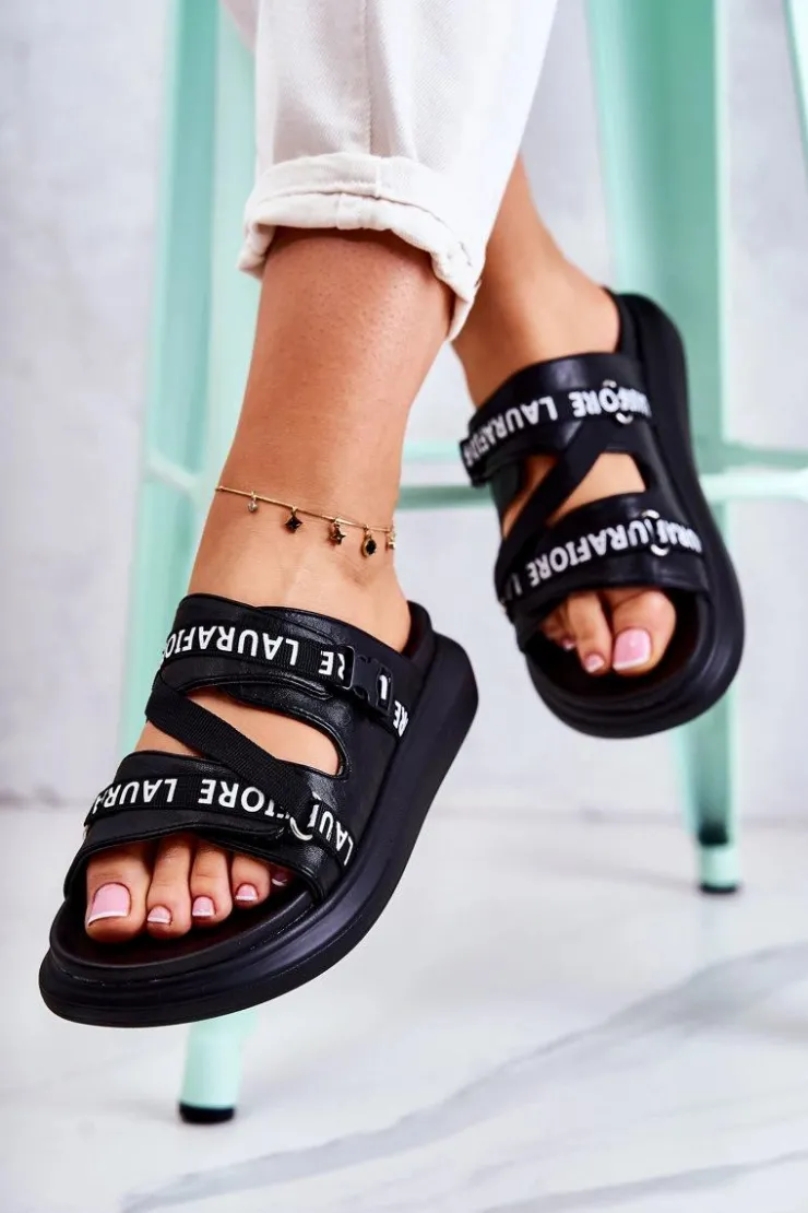 Klasyczne, wsuwane klapki marki La.Fi. Wykonane z wysokiej jakości eko skóry. Posiadają materiałowe paski oraz zapinanie na klamrę. Osadzone na masywnej platformie wykonanej z tworzywa sztucznego. Wkładka jest dodatkowo profilowana. Model z okrągłym, odkrytym noskiem. Idealne na co dzień ! Ten model z pewnością skradnie Twoje serce, dlatego nie czekaj dłużej i zamów już dziś! Przy wyborze rozmiaru prosimy kierować się tabelą rozmiarów.