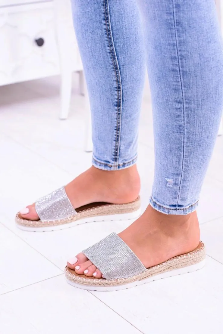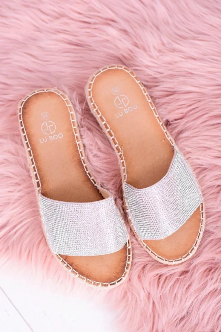 Boto Klapki Damskie Klasyczne*Damskie Srebrne Klapki Lu Boo Cyrkonie ShineMadam