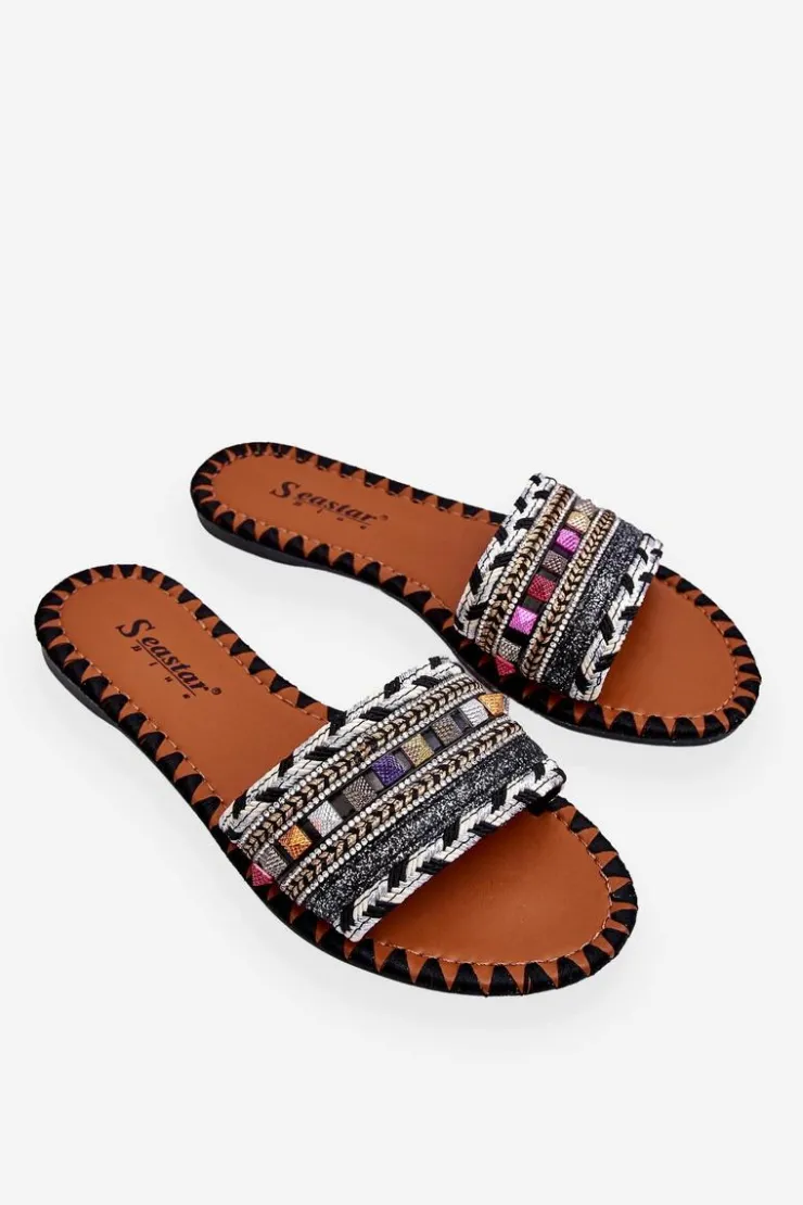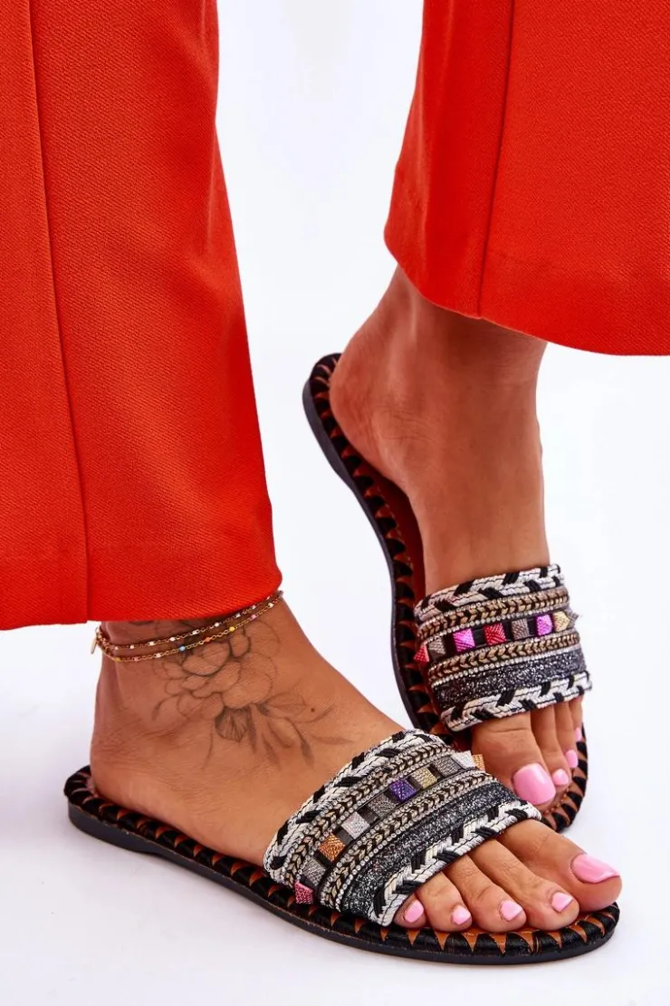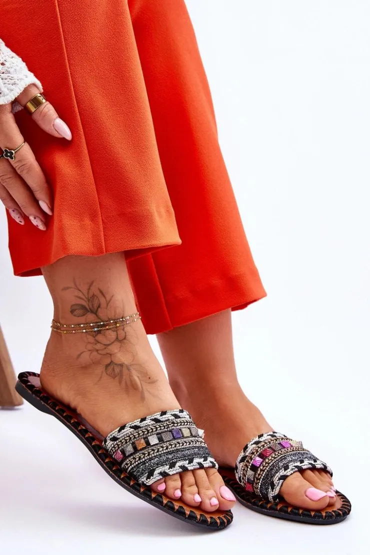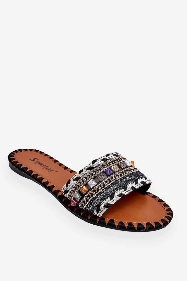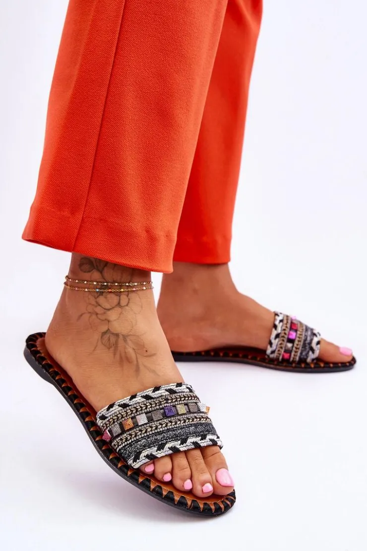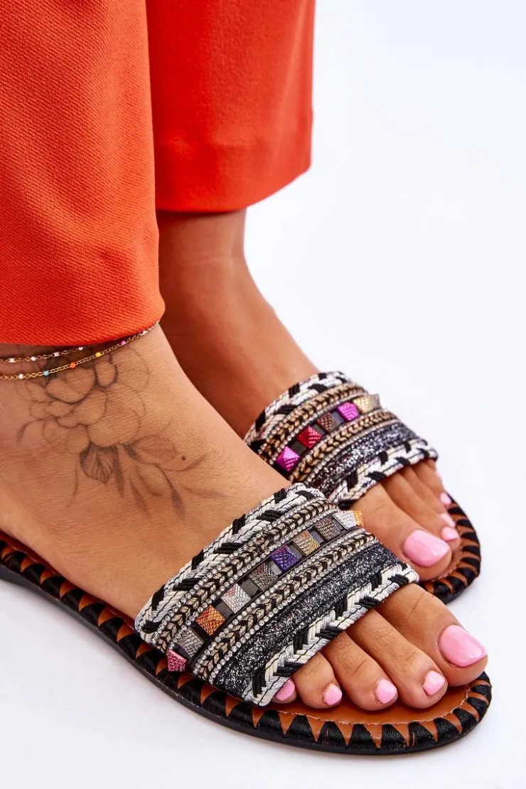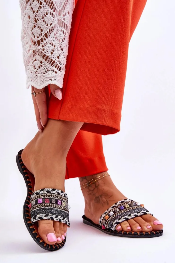 Boto Klapki Damskie Klasyczne*Damskie Zdobione Klapki Czarne Bellisa Czarny