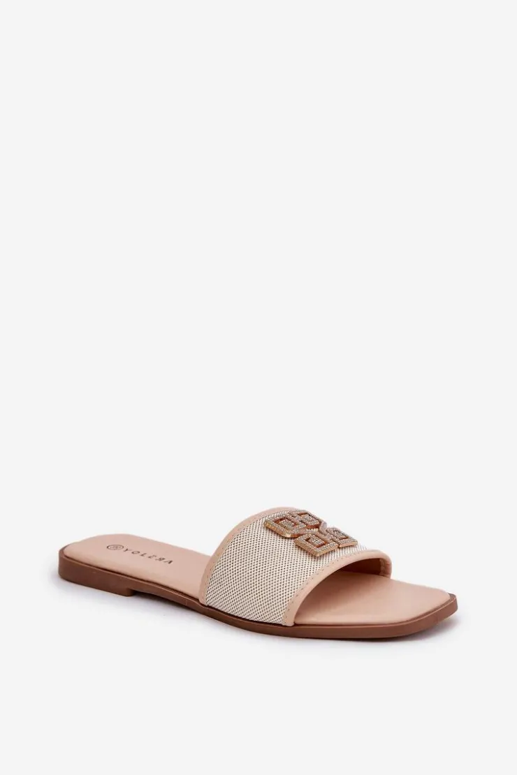 Damskie klapki na płaskim obcasie gwarantują komfort noszenia przez cały dzień. Ozdoba z lśniącymi cyrkoniami dodaje im delikatnego blasku. Ten model z pewnością podkreśli unikalny charakter Twojej letniej garderoby. Przy wyborze rozmiaru prosimy sugerować się tabelą rozmiarów.