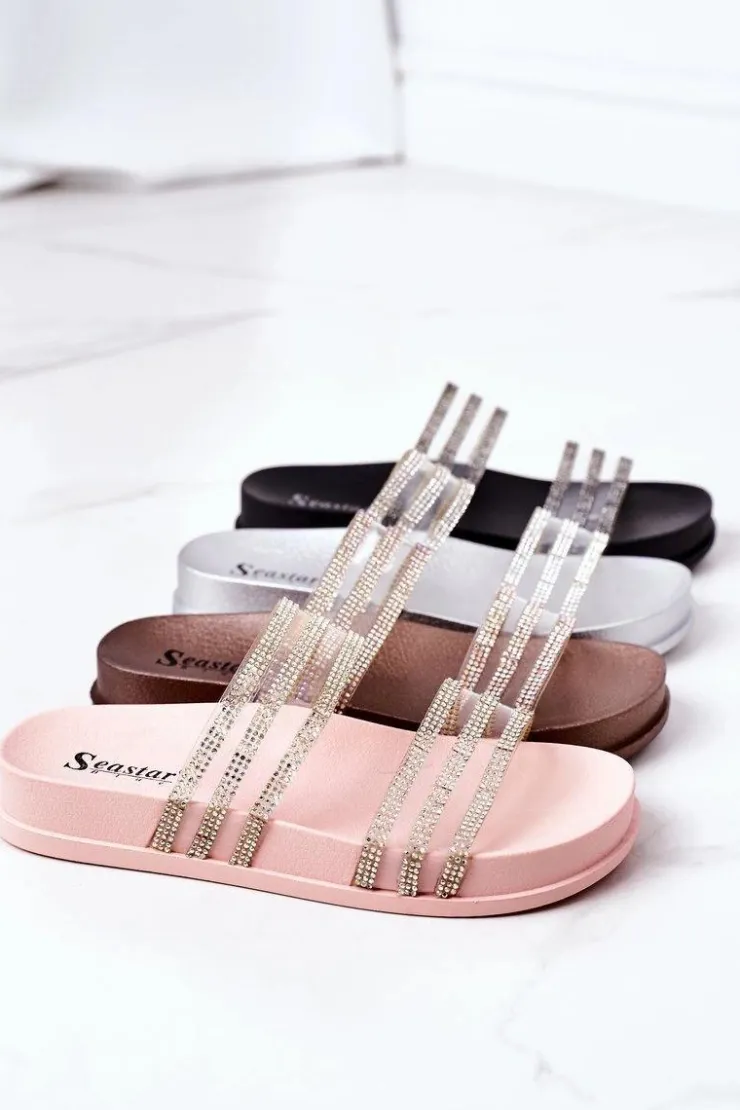 Boto Klapki Damskie Klasyczne*Gumowe Klapki Z Cyrkoniami Różowe Miss You