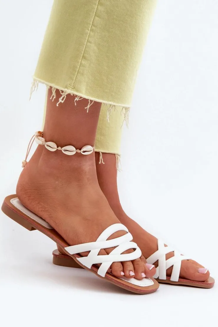 Klapki damskie wykonane z eko skóry. Płaski obcas sprawia, że są niezwykle wygodne podczas długich spacerów czy letnich wypadów. Modny design pozwala na swobodne łączenie ich zarówno z sukienkami, jak i spodniami, nadając letniej stylizacji niepowtarzalnego uroku. Model ten będzie pasować na wąską stopę. Przy wyborze rozmiaru prosimy sugerować się tabelą rozmiarów.