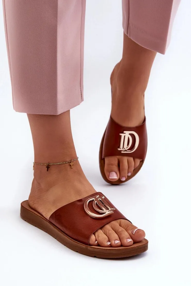 Klapki damskie z ekoskóry prezentują się niezwykle stylowo i elegancko. Płaska podeszwa zapewnia wygodę i komfort podczas długich spacerów czy letnich wyjść. Dodatkowo złota ozdoba nadaje im subtelnego uroku, co sprawia, że doskonale wpasują się w różnorodne letnie stylizacje. Przy wyborze rozmiaru prosimy sugerować się tabelą rozmiarów.