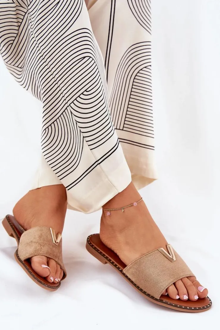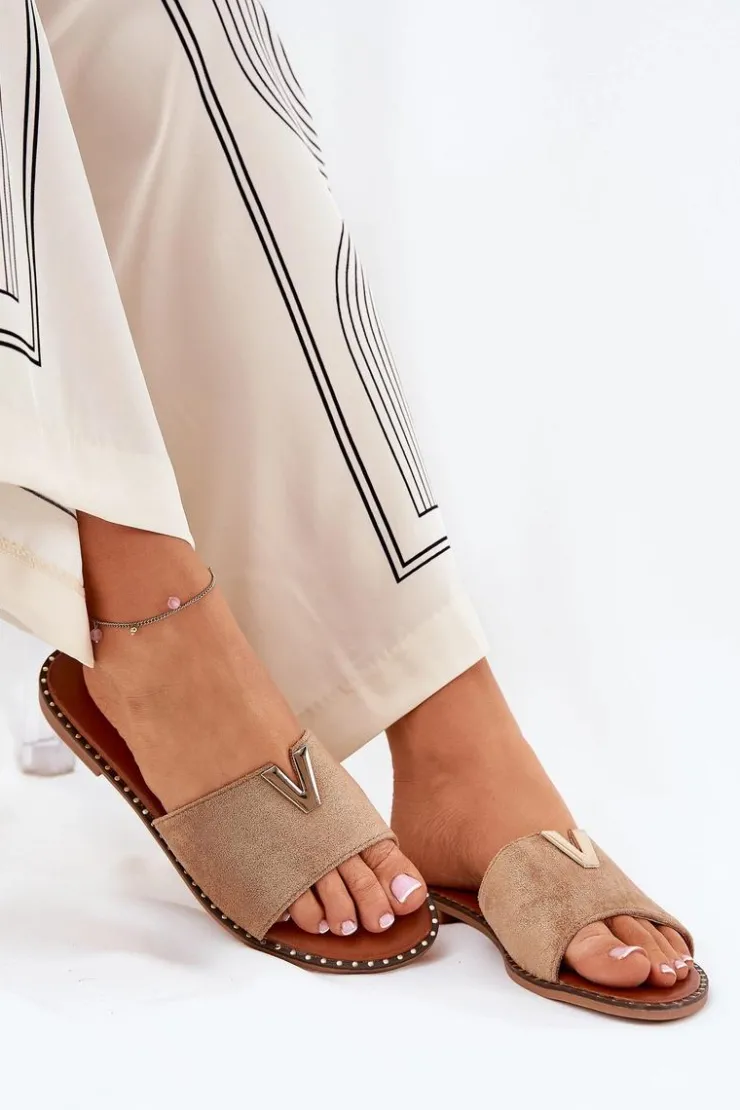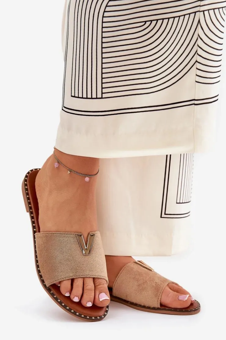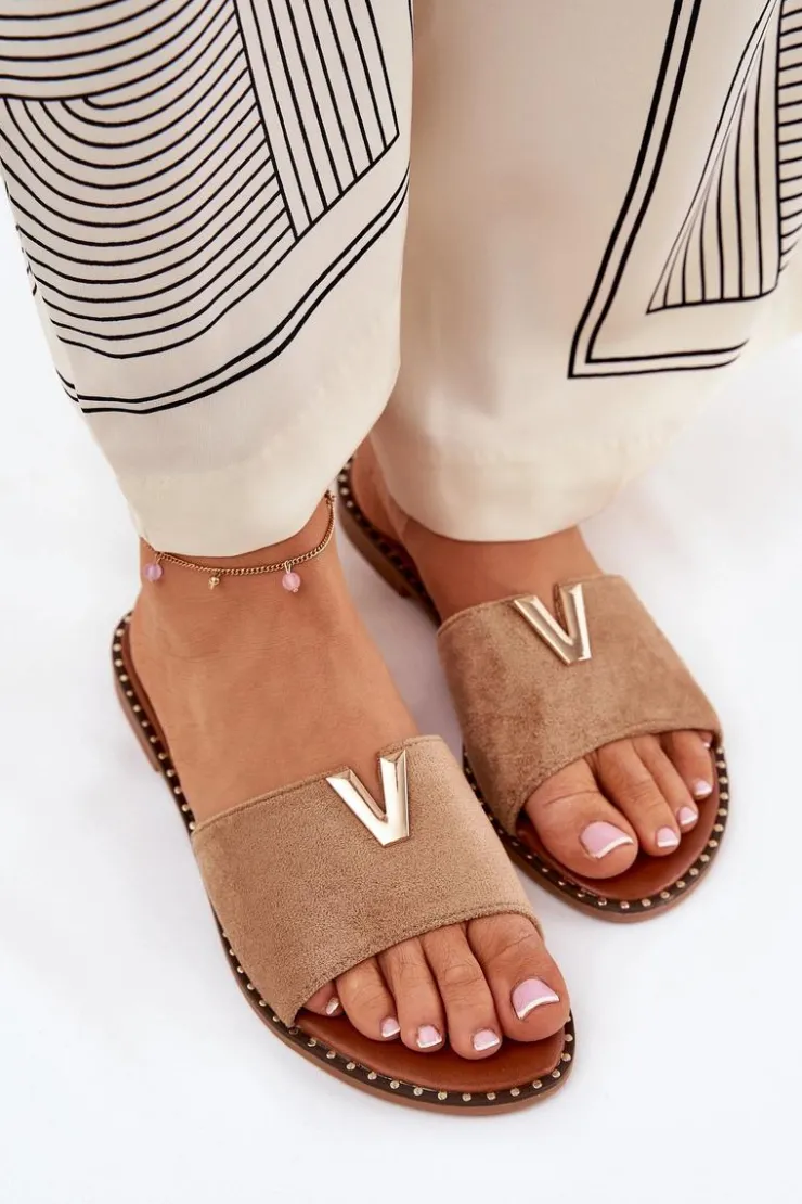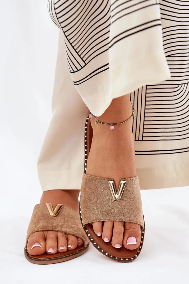 Klapki damskie na płaskim obcasie to idealny wybór na letnie dni. Wykonane z przyjemnego w dotyku eko zamszu, zapewniają komfort noszenia. Klasyczny fason wzbogacony został o ozdobne detale, które nadają im eleganckiego charakteru. Doskonałe zarówno na co dzień, jak i na letnie spacery. Świetnie komponują się z sukienkami, spódnicami oraz spodniami, dodając stylowego akcentu każdej stylizacji. Przy wyborze rozmiaru prosimy sugerować się tabelą rozmiarów.
