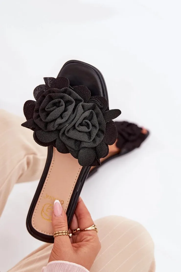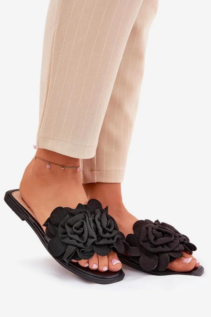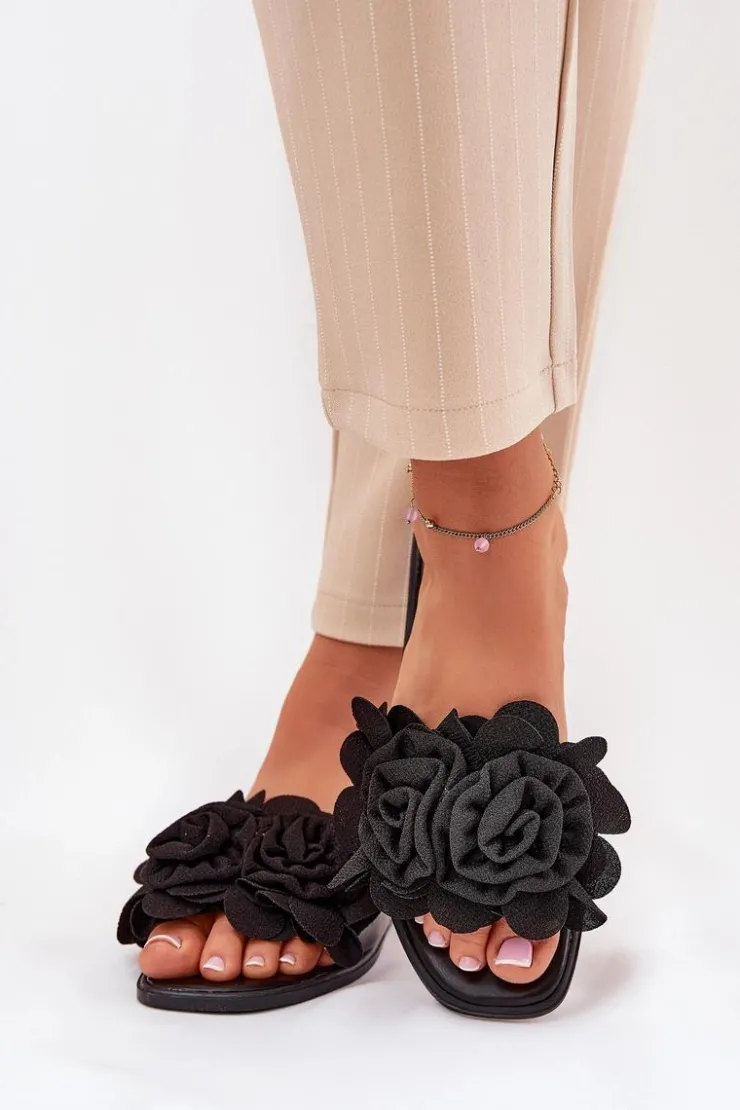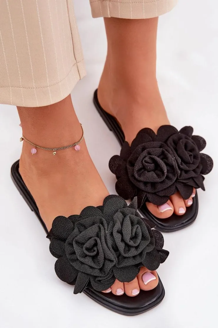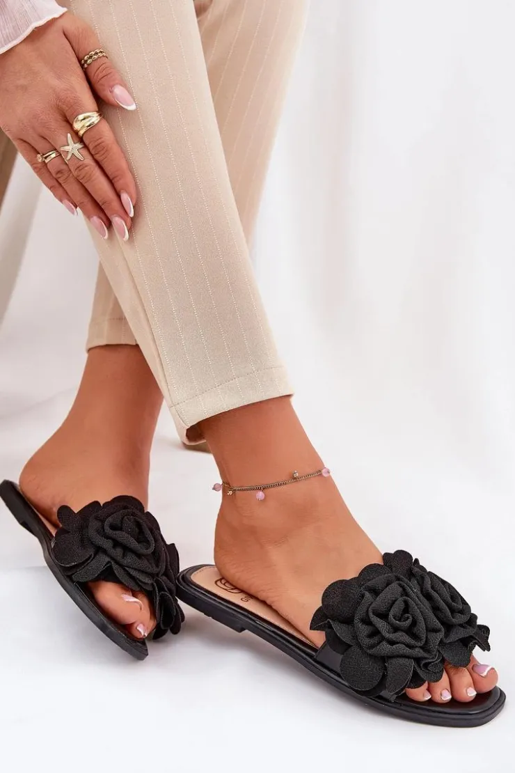 Stylowe klapki damskie wykonane z eko skóry, osadzone na płaskiej podeszwie, które łączą wygodę z delikatnym, kobiecym akcentem. Z przodu buty ozdobione są urokliwymi kwiatkami, które nadają im wyjątkowego charakteru. Idealne na ciepłe dni, te klapki doskonale komponują się z letnimi sukienkami, spódnicami czy szortami, wprowadzając do każdej stylizacji lekkość i świeżość. Przy wyborze rozmiaru prosimy sugerować się tabelą rozmiarów.