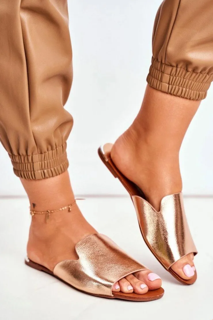 Boto Klapki Damskie Klasyczne*Klapki Damskie Płaskie Różowe Złoto Mimios