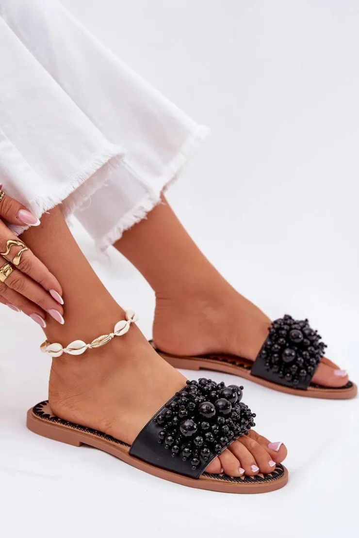 Damskie klapki na płaskim obcasie to doskonały wybór na upalne dni! Wykonane z eko skóry. Osadzone na płaskim obcasie. Model ten wyróżnia się ozdobnymi, licznymi koralikami na pasku. Doskonały wybór na letnie dni, zarówno do codziennych, jak i bardziej eleganckich stylizacji. Przy wyborze rozmiaru prosimy sugerować się tabelą rozmiarów.