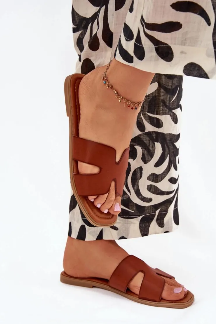 Klapki damskie z eko skóry, osadzone na płaskim obcasie, to połączenie prostoty i elegancji. Pasek z wycięciami dodaje im subtelnego charakteru, a ich klasyczny fason sprawia, że doskonale komponują się z różnorodnymi stylizacjami. Idealne na co dzień, zapewniają komfort i lekkość, dodając letnim outfitom elegancji. Przy wyborze rozmiaru prosimy sugerować się tabelą rozmiarów.