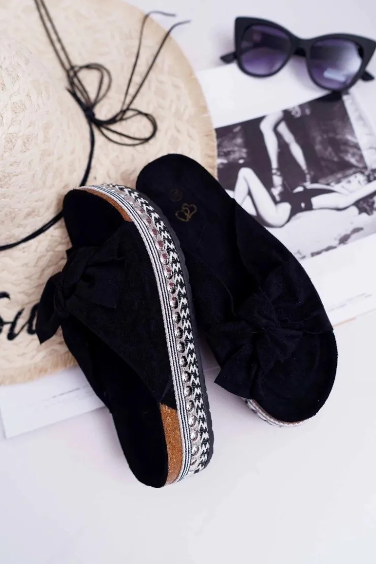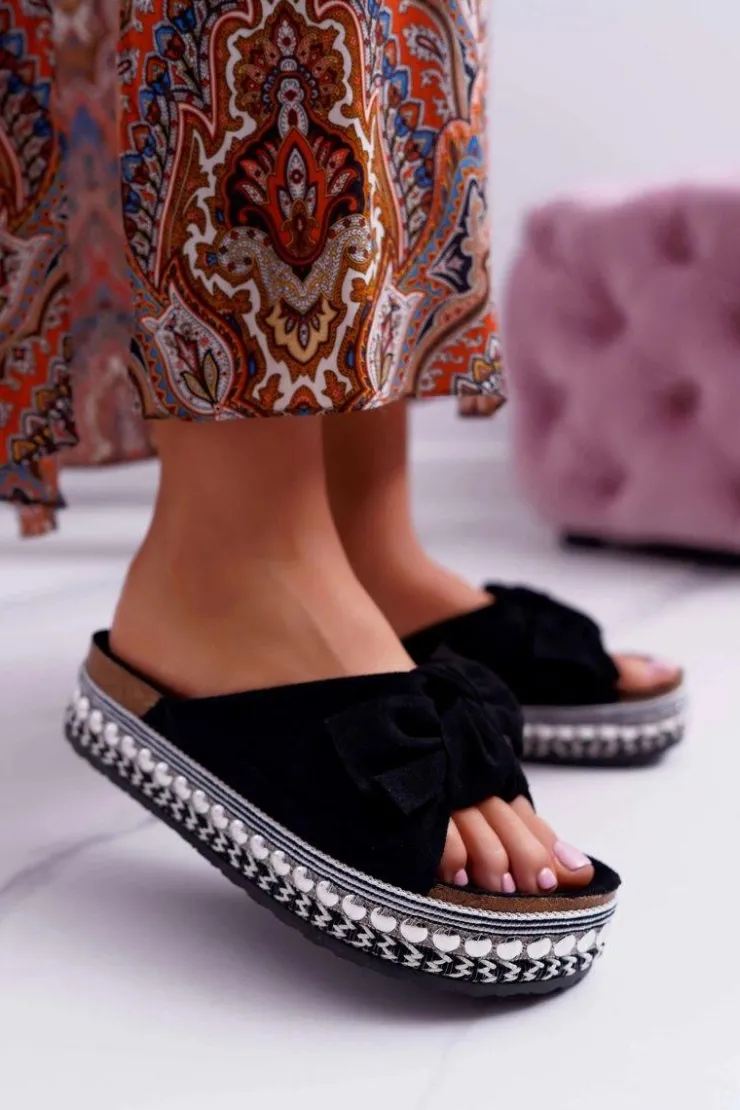 Boto Klapki Damskie Klasyczne*Klapki Damskie Z Kokardami Gruba Podeszwa Czarne Milady