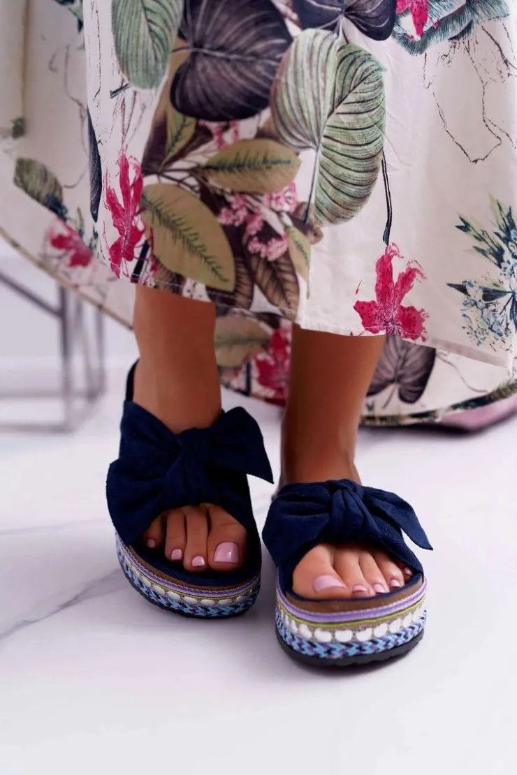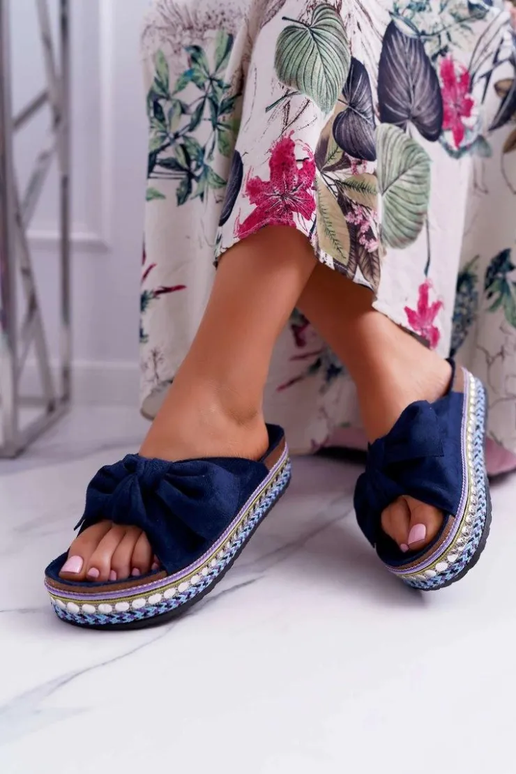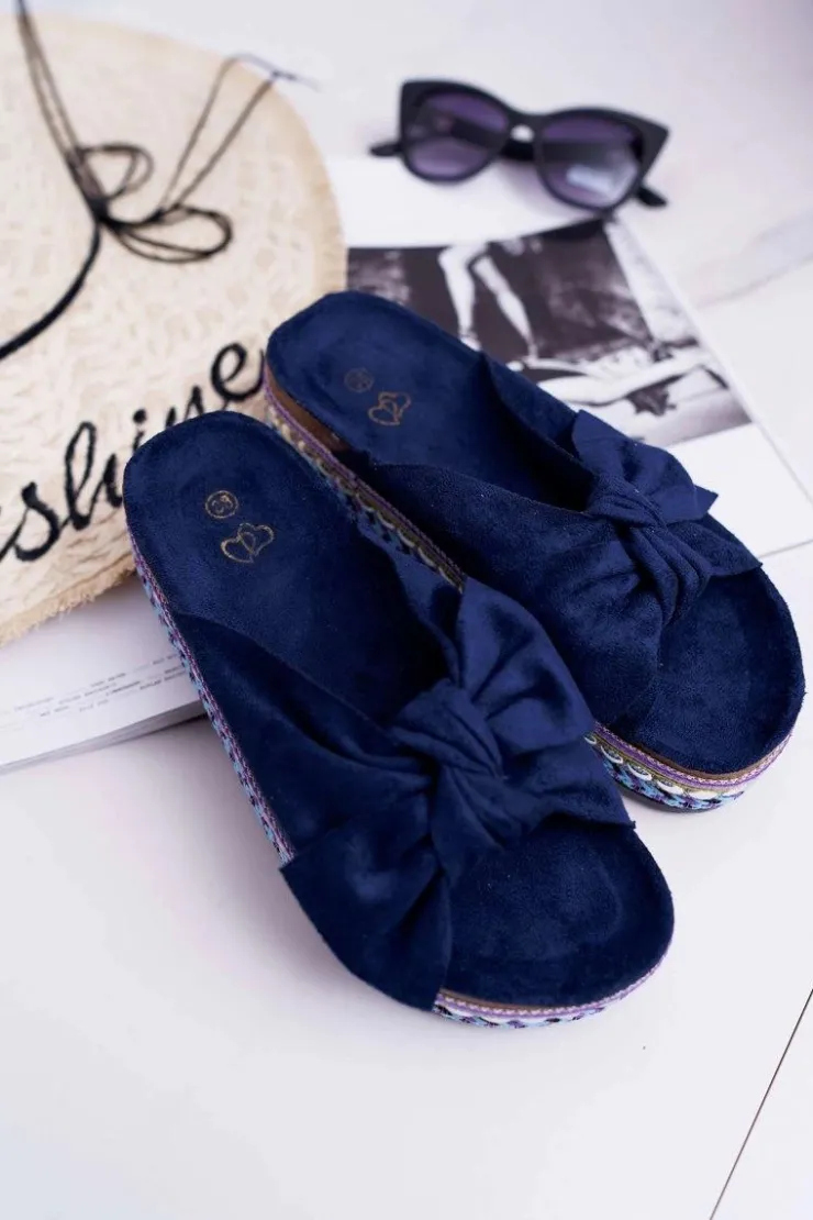 Boto Klapki Damskie Klasyczne*Klapki Damskie Z Kokardami Gruba Podeszwa Granatowe Milady