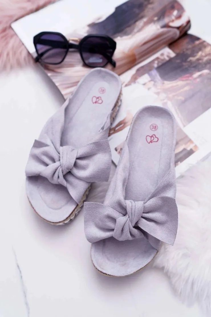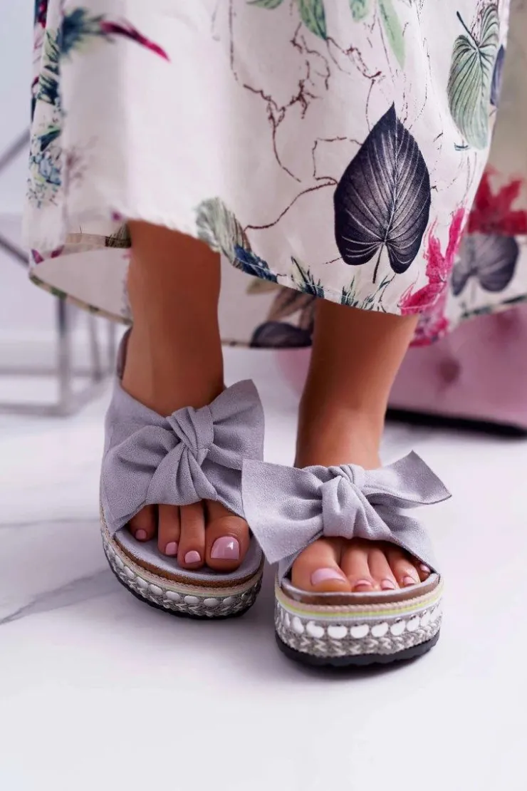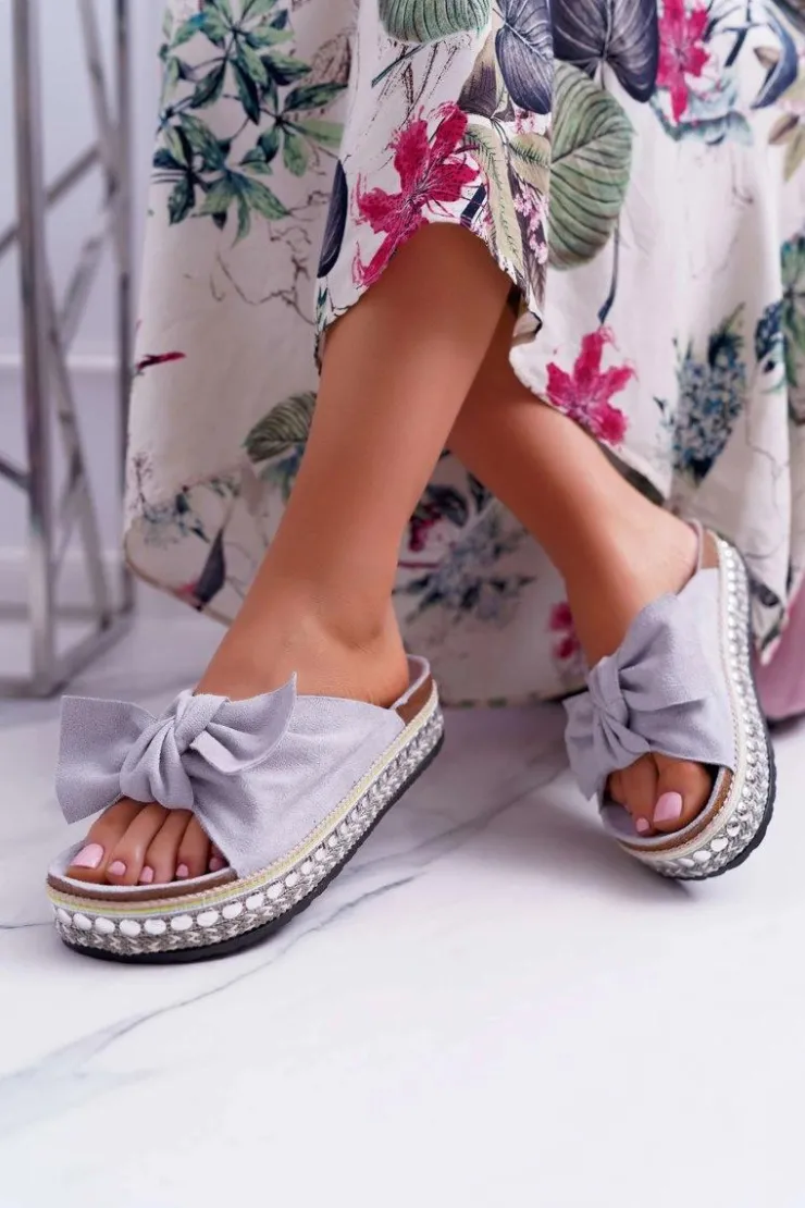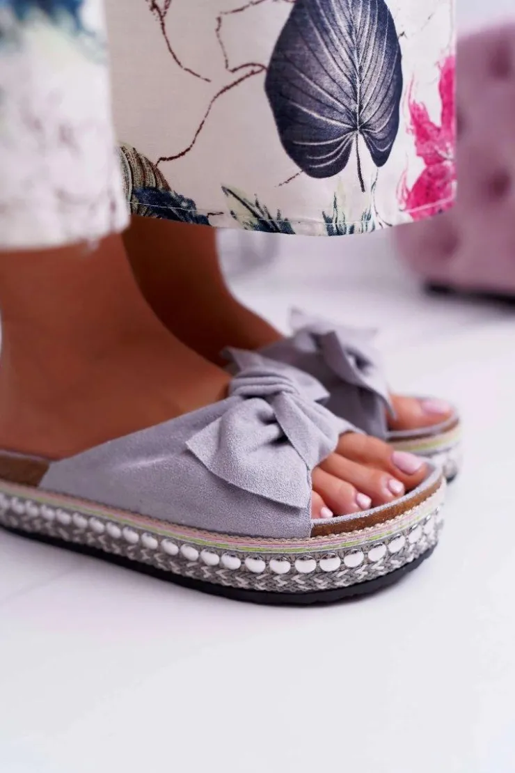 Boto Klapki Damskie Klasyczne*Klapki Damskie Z Kokardami Gruba Podeszwa Szare Milady