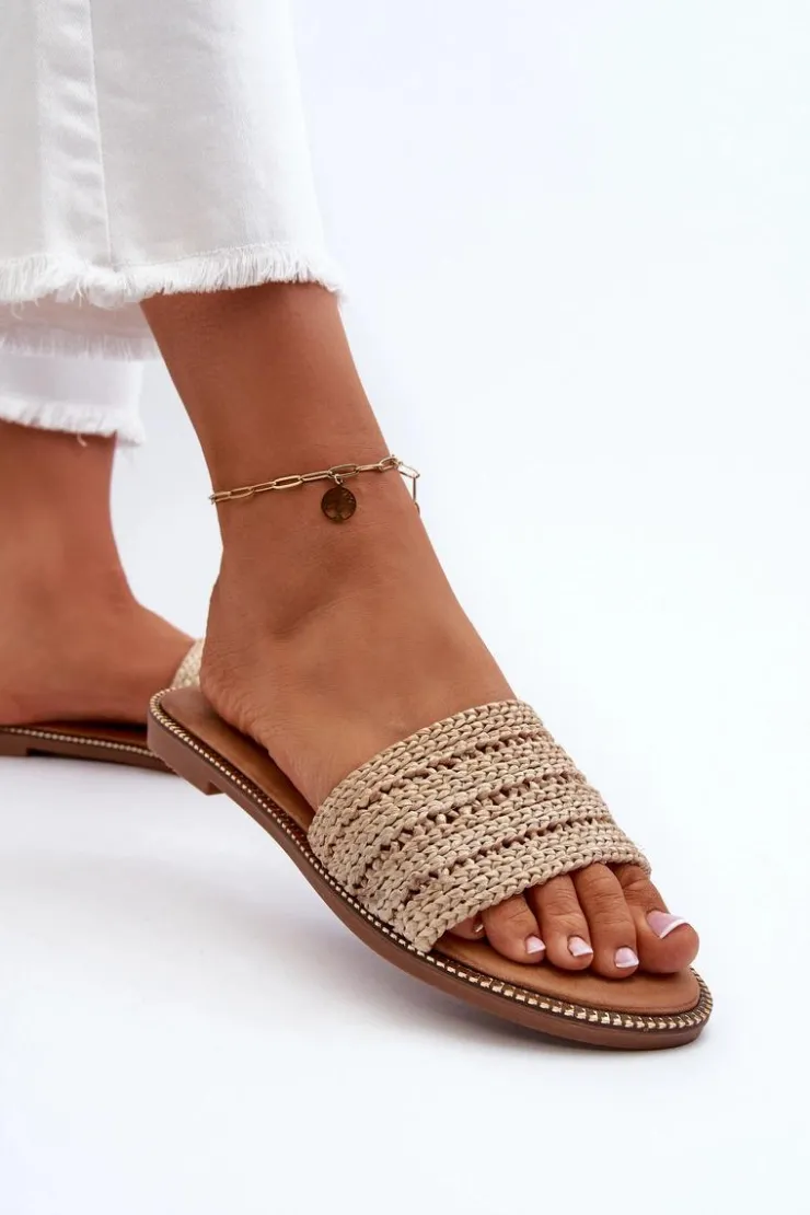 Klasyczne klapki damskie na płaskim obcasie to niezawodny wybór na letnie dni. Prosty design sprawia, że doskonale pasują do wielu letnich stylizacji. Z przodu szeroki pasek z plecionką. Te klapki są doskonałym wyborem dla kobiet ceniących zarówno styl, jak i komfort. Przy wyborze rozmiaru prosimy sugerować się tabelą rozmiarów.