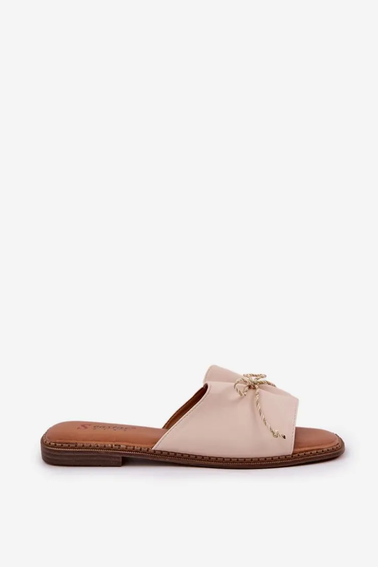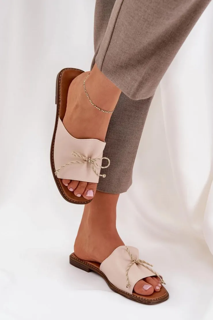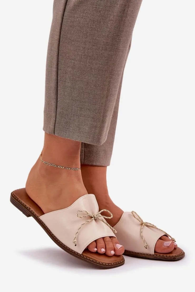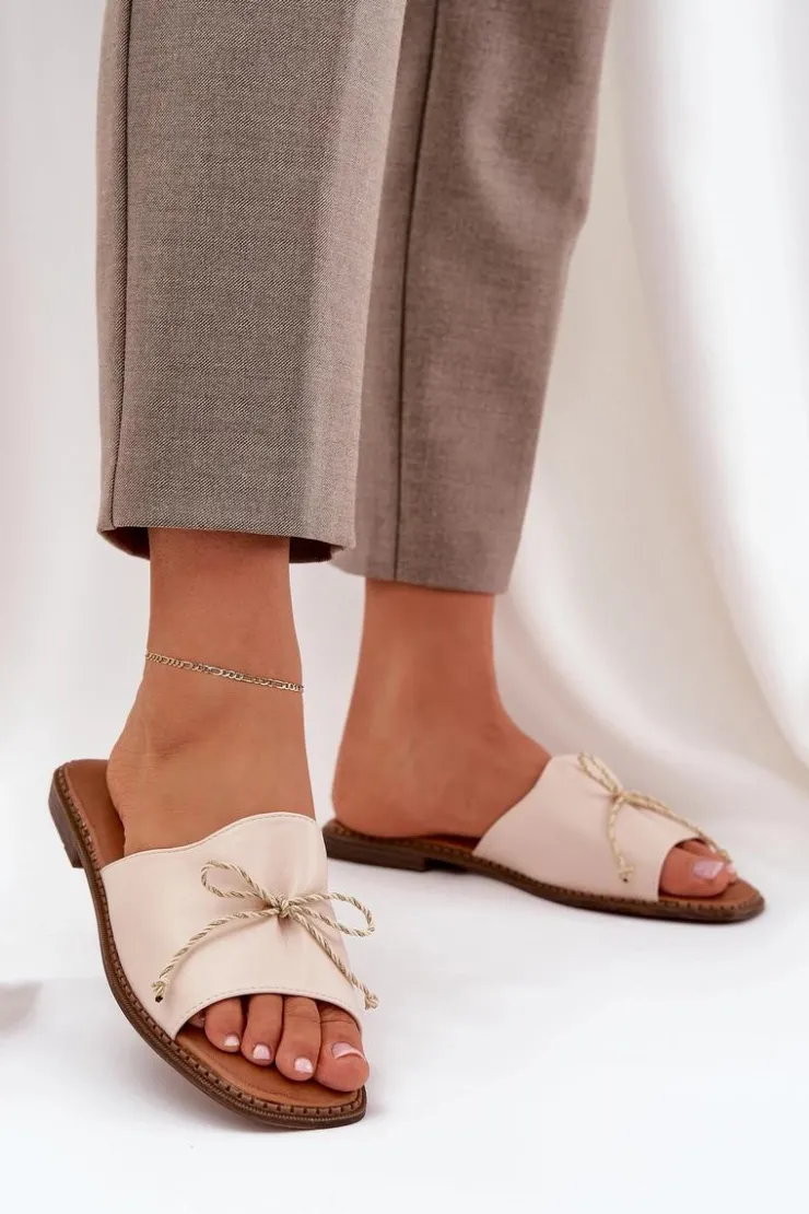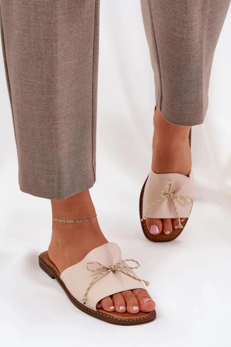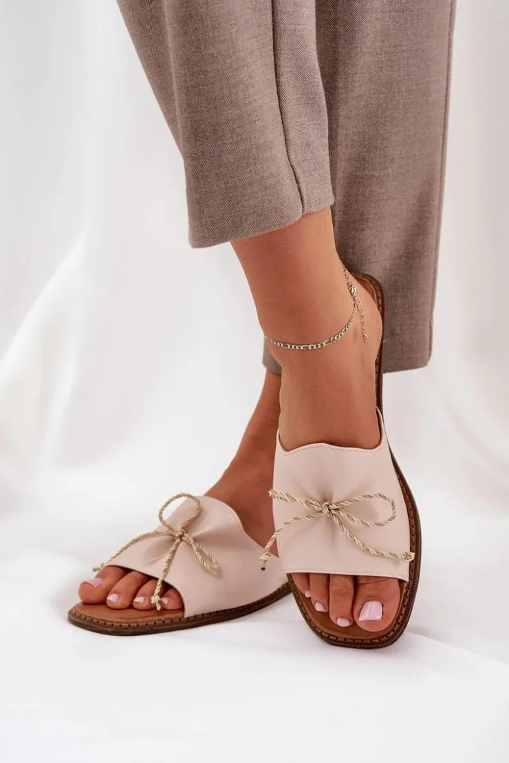 Boto Klapki Damskie Klasyczne*Klapki Na Płaskiej Podeszwie Z Ozdobną Kokardką Beżowe Deonelis Beżowy
