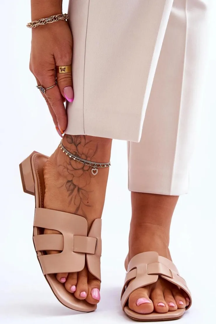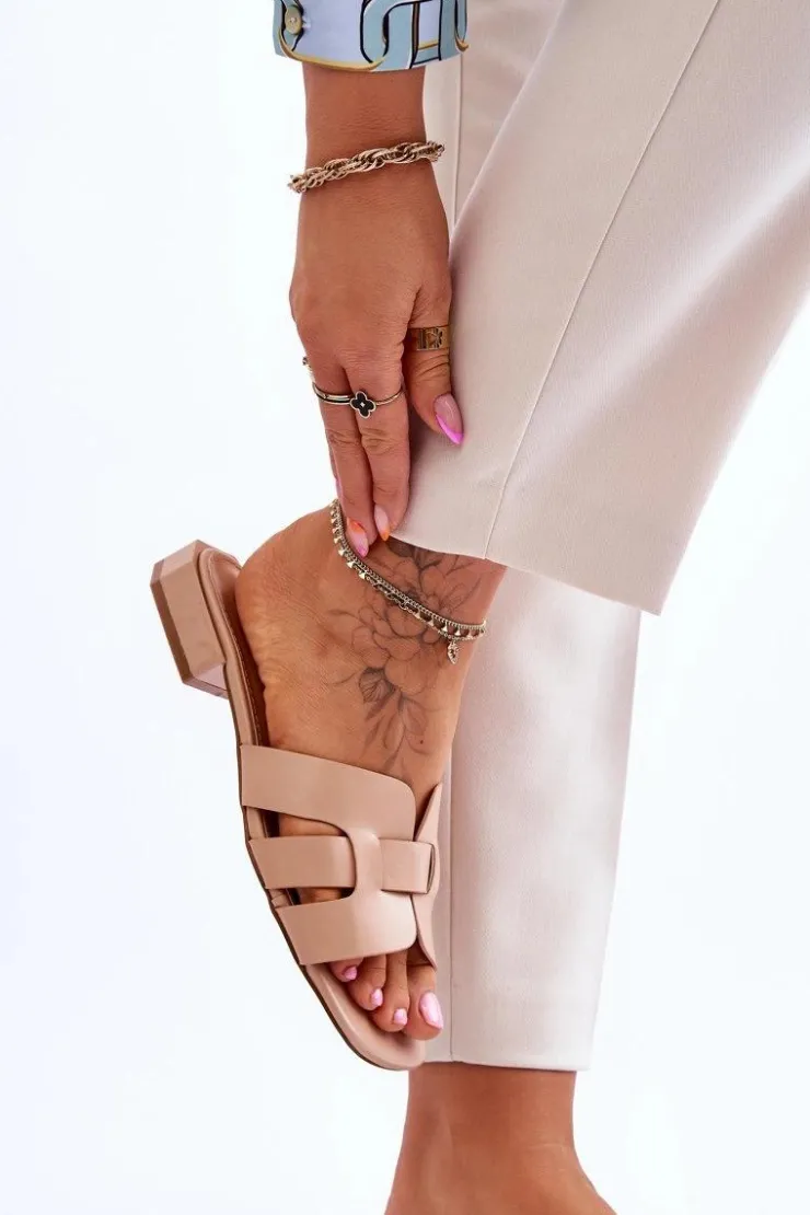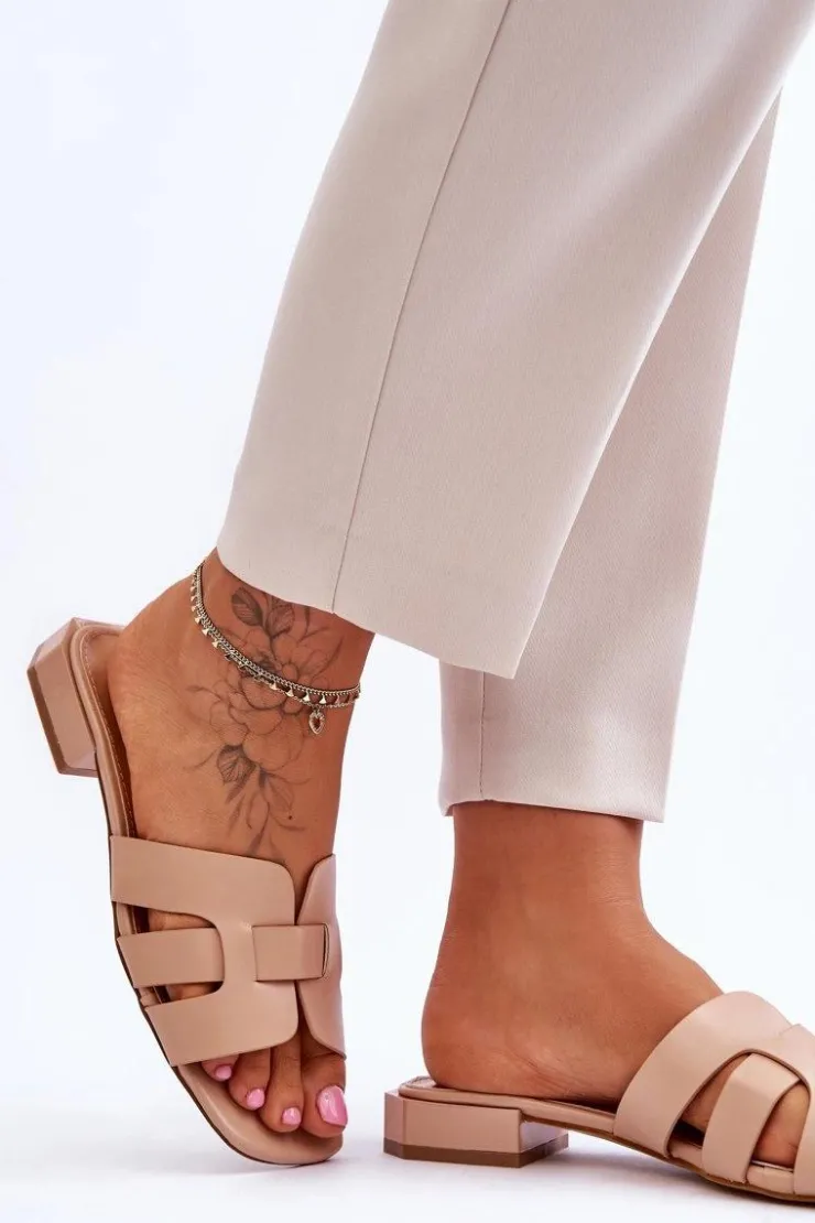 Klasyczne klapki damskie zostały wykonane z ekologicznej skóry. Osadzone na modnym, płaskim obcasie. Klapki posiadają wycięcia w cholewce. Nosek jest odkryty, kwadratowy. Wygodna wkładka z eko skóry zapewni komfortowe użytkowanie obuwia. Idealne na co dzień, na spacer, do pracy czy do miasta! Przy wyborze rozmiaru prosimy sugerować się tabelą rozmiarów.