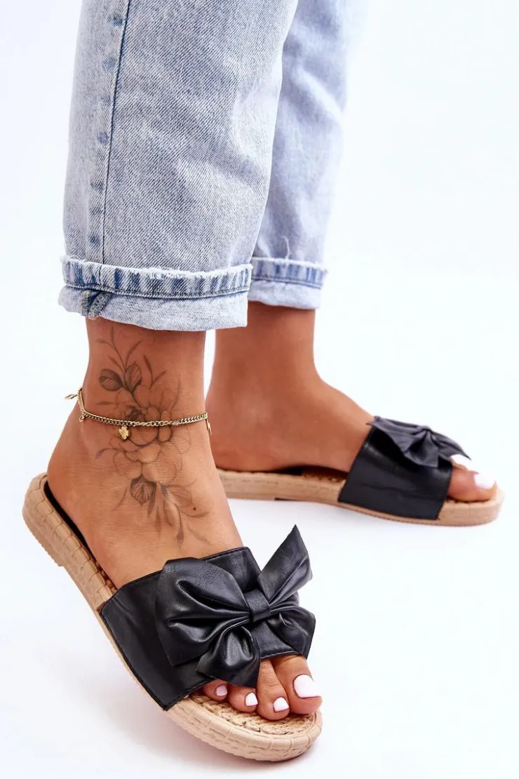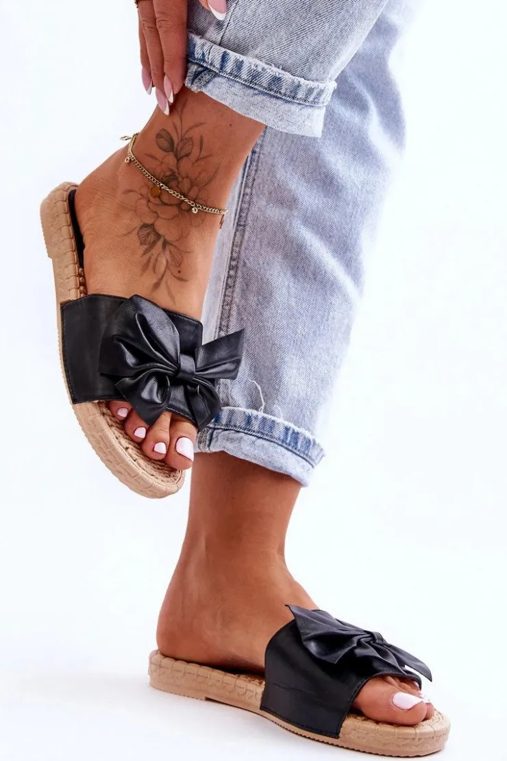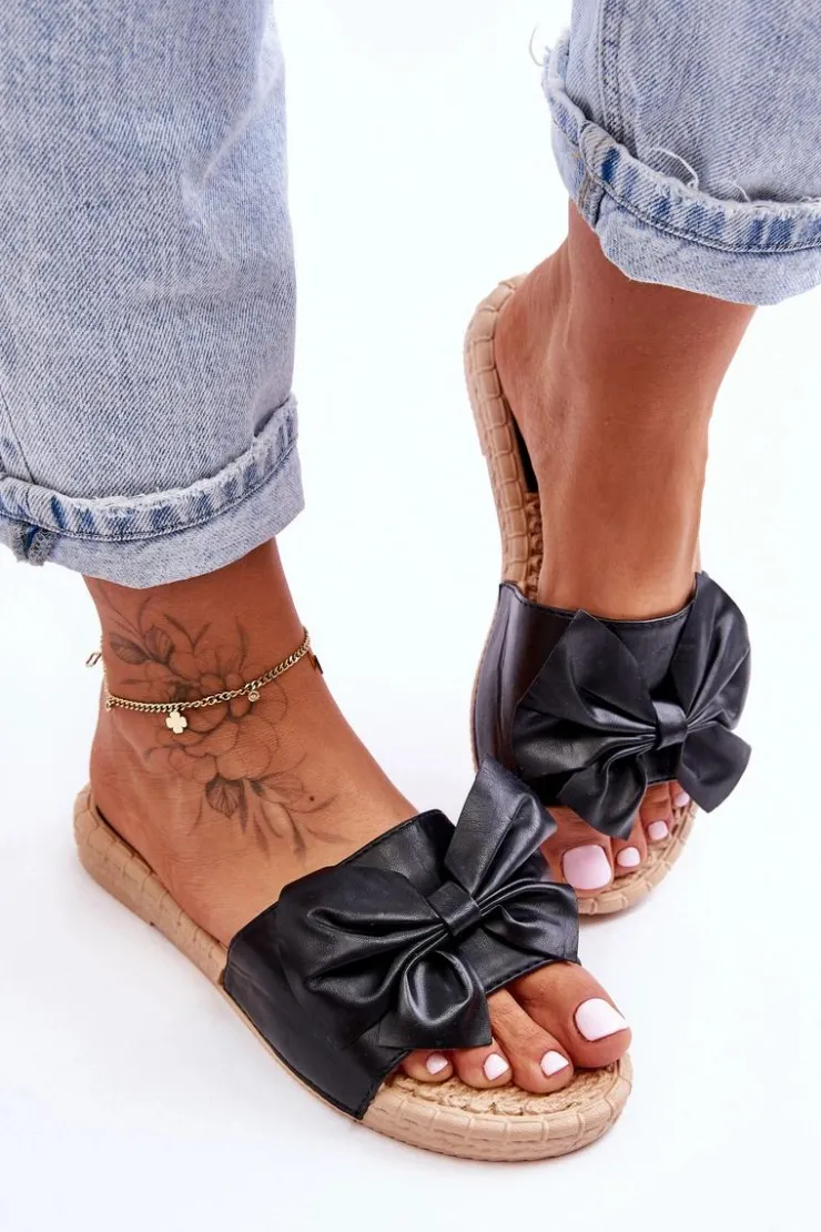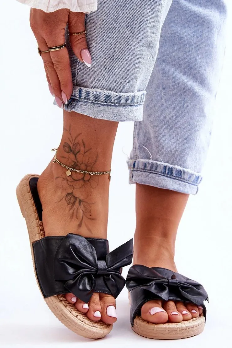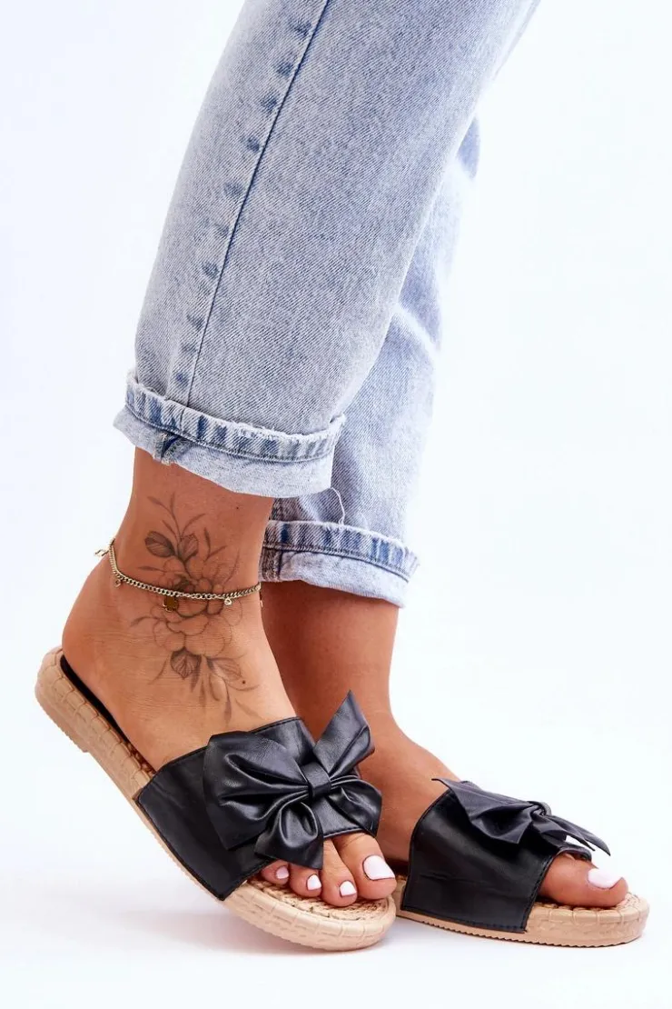 Klasyczne, wsuwane klapki damskie zostały wykonane z wierzchu z eko skóry. Dodatkowo z przodu posiadają uroczą kokardę. Wkładka oraz podeszwa zostały wykonane z gumowego tworzywa. Klapki są wygodne w użytkowaniu, a także elastyczne. Klapki osadzono na płaskim obcasie. Przy wyborze rozmiaru prosimy sugerować się tabelą rozmiarów.