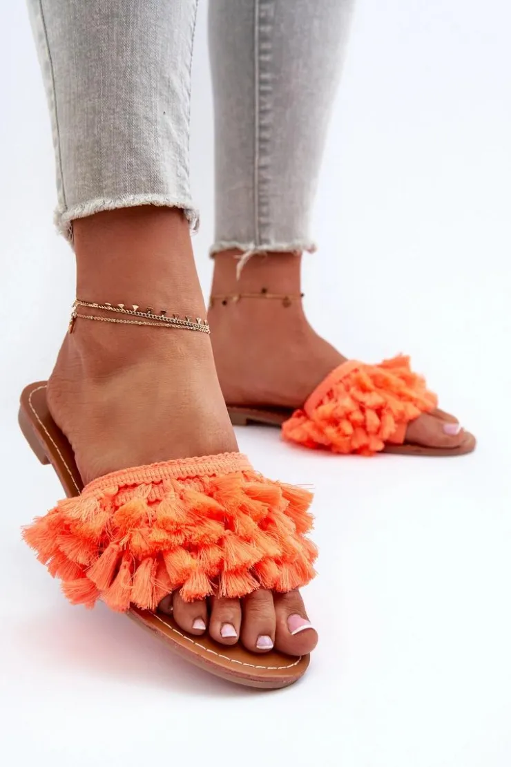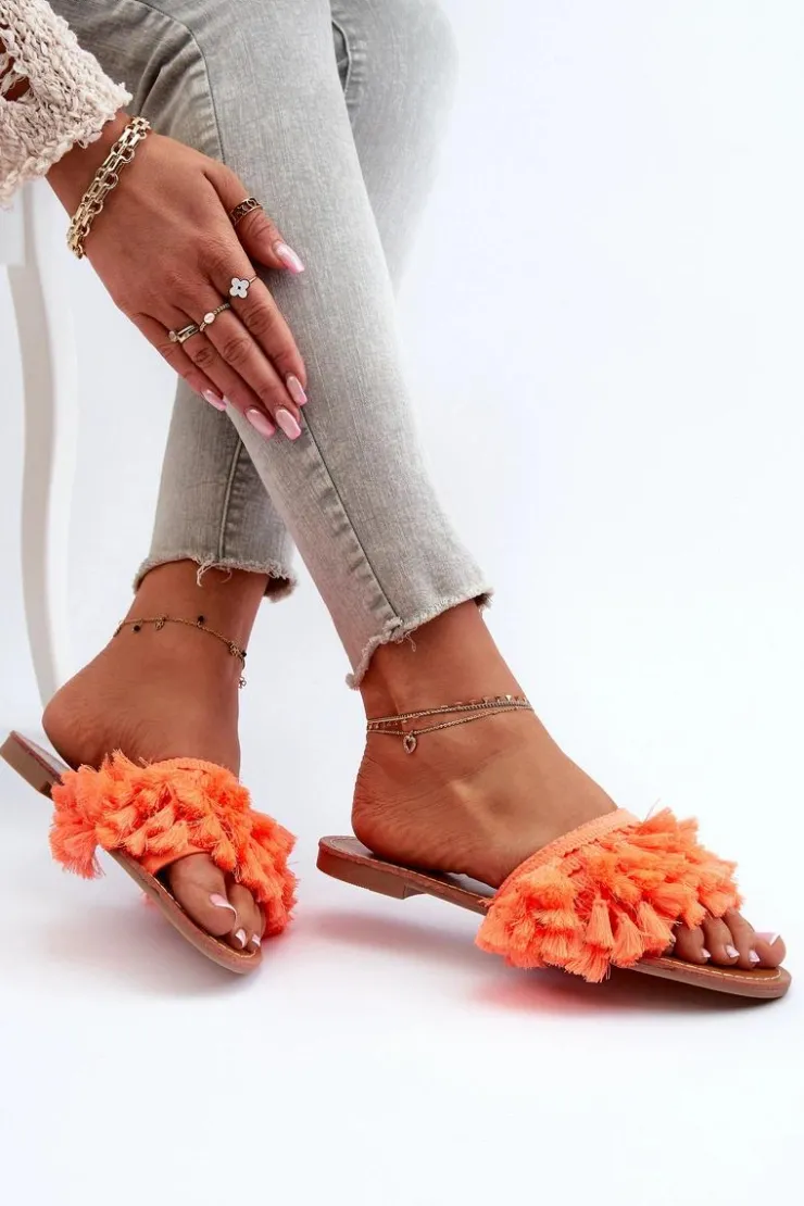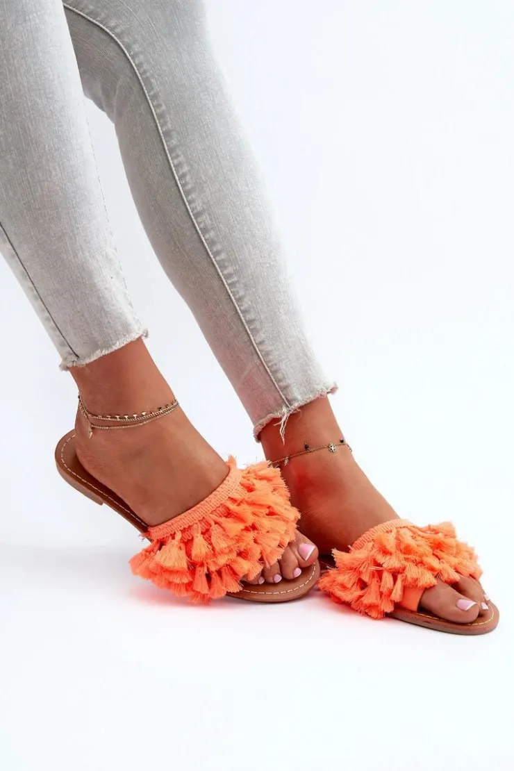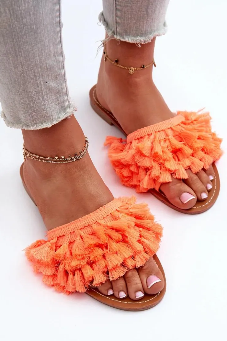 Boto Klapki Damskie Klasyczne*Płaskie Klapki Damskie Z Frędzlami Pomarańczowe Rialle