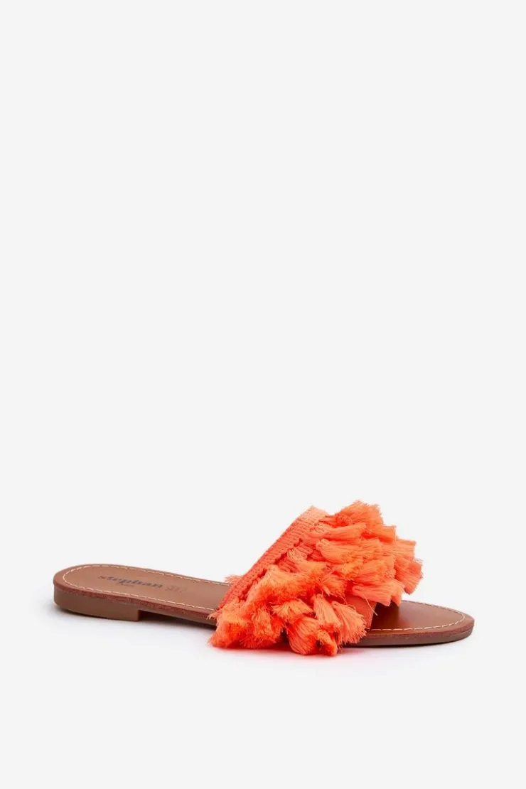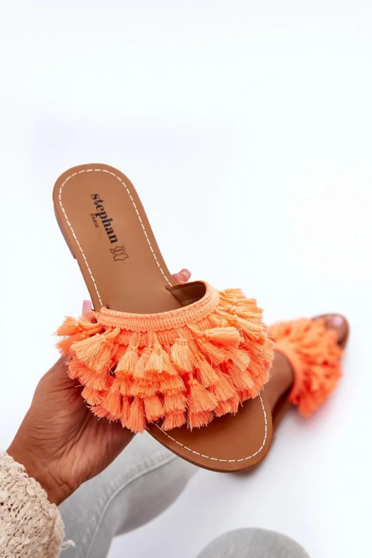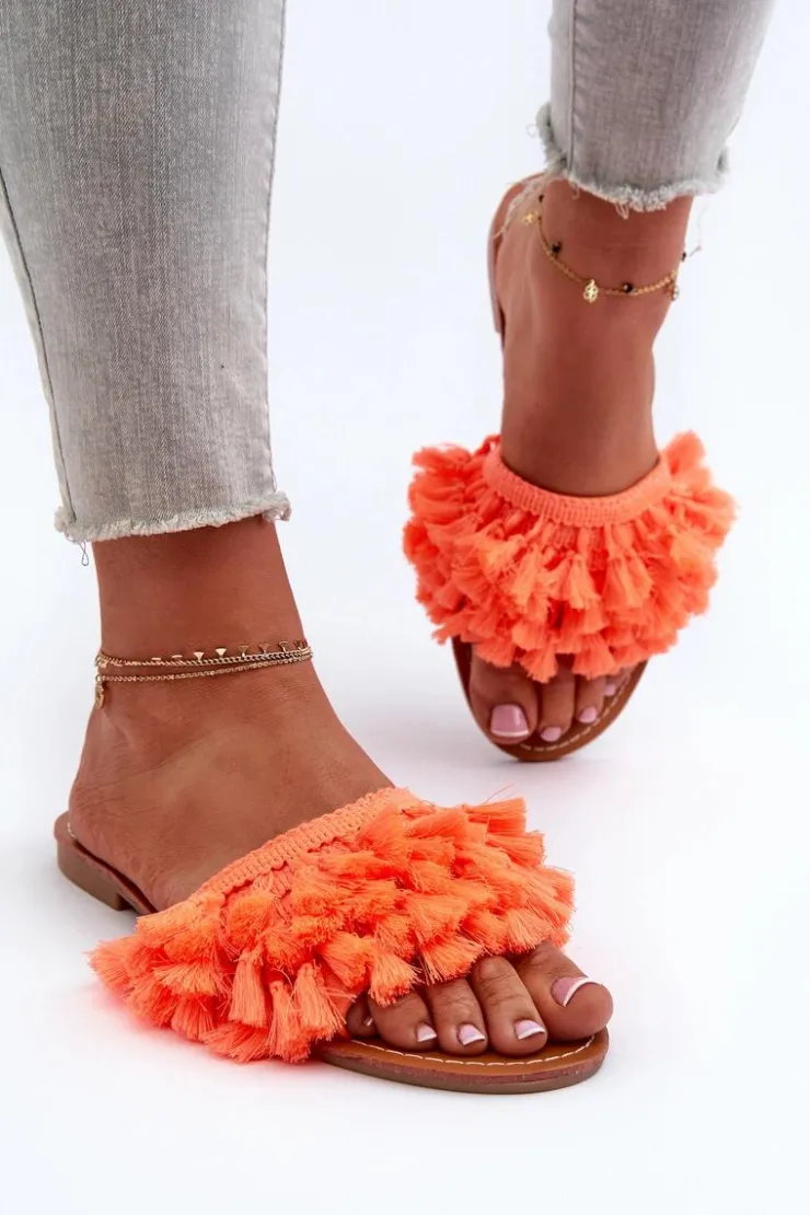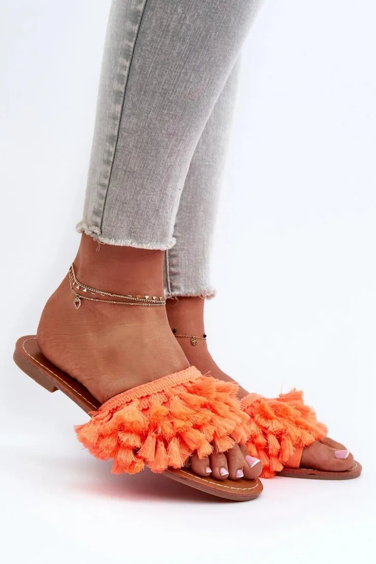 Boto Klapki Damskie Klasyczne*Płaskie Klapki Damskie Z Frędzlami Pomarańczowe Rialle