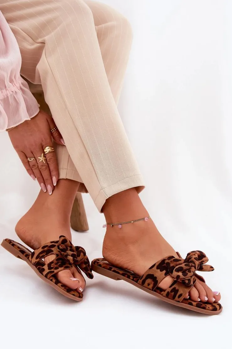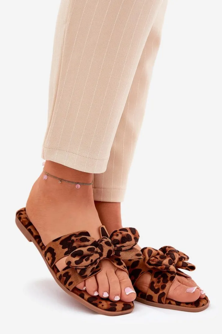 Klapki damskie wykonane z eko zamszu. Osadzone na płaskim obcasie, które łączą komfort z subtelnym stylem. Przód butów ozdobiony jest wycięciami oraz uroczą kokardką, co nadaje im wyjątkowego charakteru. Doskonale pasują do letnich sukienek, spódnic czy szortów, łącząc prosty design z funkcjonalnością, idealnie wpisując się w wakacyjny styl. Przy wyborze rozmiaru prosimy sugerować się tabelą rozmiarów.