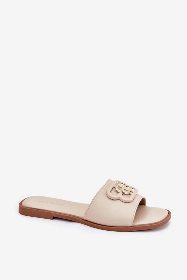 Klapki damskie na płaskim obcasie to wygodna i stylowa opcja na ciepłe dni. Na pasku znajduje się subtelny ozdobny detal, który nadaje im eleganckiego charakteru. Miękka eko skórzana wkładka zapewnia komfort przez cały dzień. Doskonałe do sukienek oraz spodni materiałowych, te klapki łączą funkcjonalność z modnym wyglądem, idealne na codzienne wyjścia. Przy wyborze rozmiaru prosimy sugerować się tabelą rozmiarów.