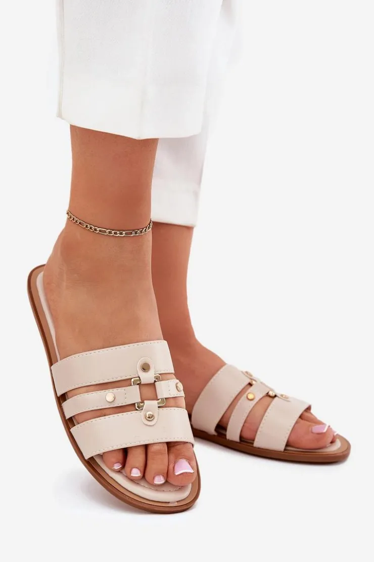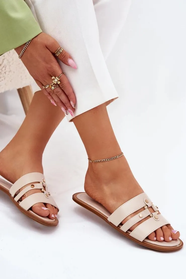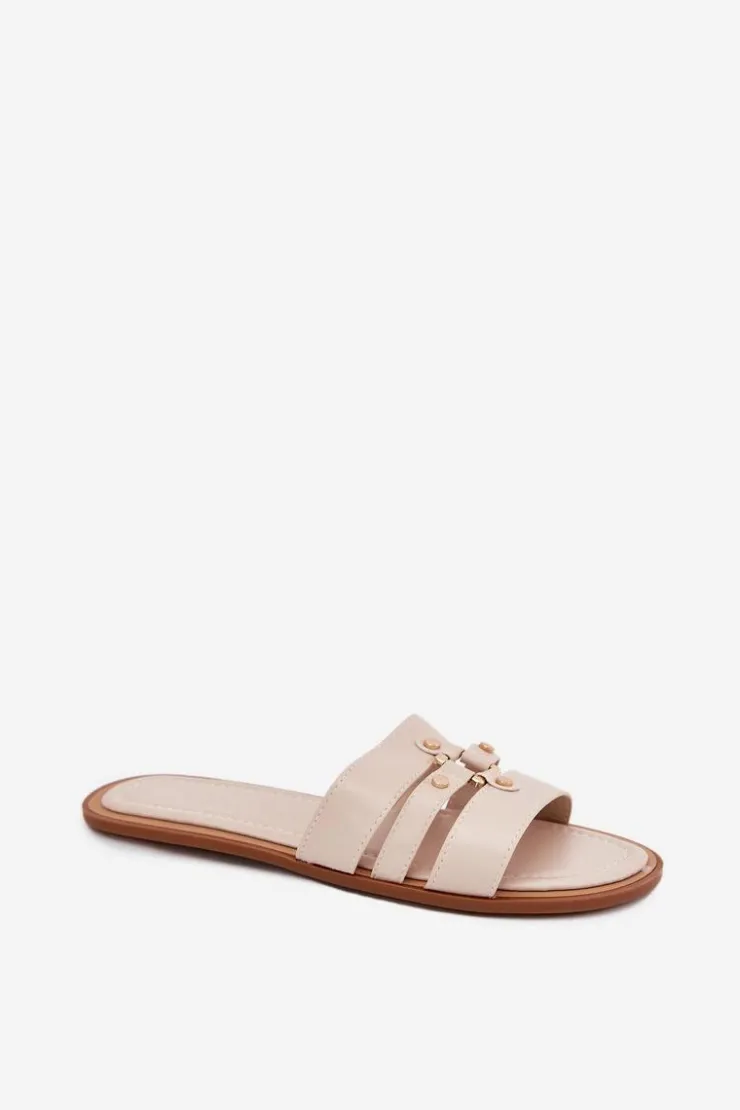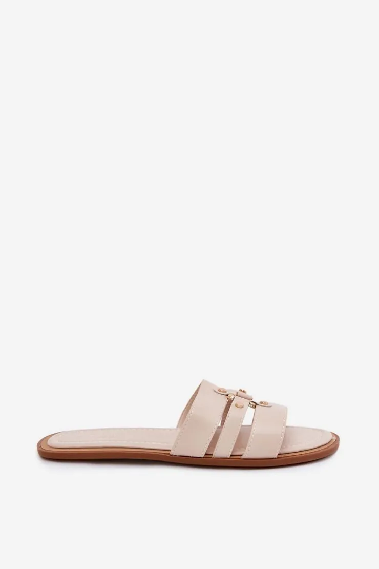 Boto Klapki Damskie Klasyczne*Płaskie Klapki Damskie Ze Złotym Detalem Beżowe Noroti Beżowy