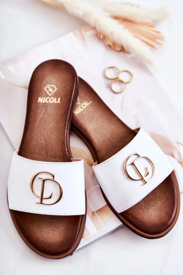 Boto Klapki Damskie Klasyczne*Skórzane Damskie Klapki Nicole 2735 Białe