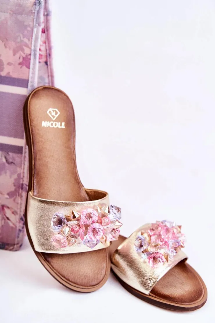 Klasyczne, wsuwane klapki marki Nicole. Buty wykonane są w całości ze skóry naturalnej z dbałością o szczegóły. Posiadają ozdobę na przodzie w postaci kolorowych kryształków. Miękka wkładka także została wykonana z naturalnej skóry, dzięki której komfort użytkowania jest jeszcze większy. Buty osadzone na płaskim obcasie. Koniecznie sprawdź całą naszą kolekcję butów marki Nicole. Przy wyborze rozmiaru prosimy sugerować się tabelą rozmiarów.