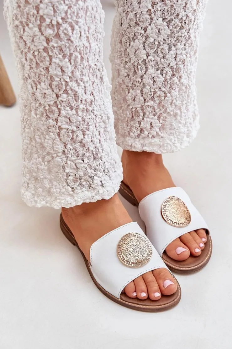 Damskie klapki wykonane z wysokiej jakości skóry naturalnej to połączenie elegancji i wygody. Osadzone na płaskim obcasie, zapewniają komfort noszenia przez cały dzień. Subtelna ozdoba na cholewce nadaje im wyjątkowego uroku i klasy, dzięki czemu świetnie sprawdzą się zarówno w casualowych, jak i bardziej eleganckich stylizacjach. Idealne na ciepłe dni, stanowią niezastąpiony dodatek do letnich sukienek, spodni czy spódnic. Przy wyborze rozmiaru prosimy sugerować się tabelą rozmiarów.