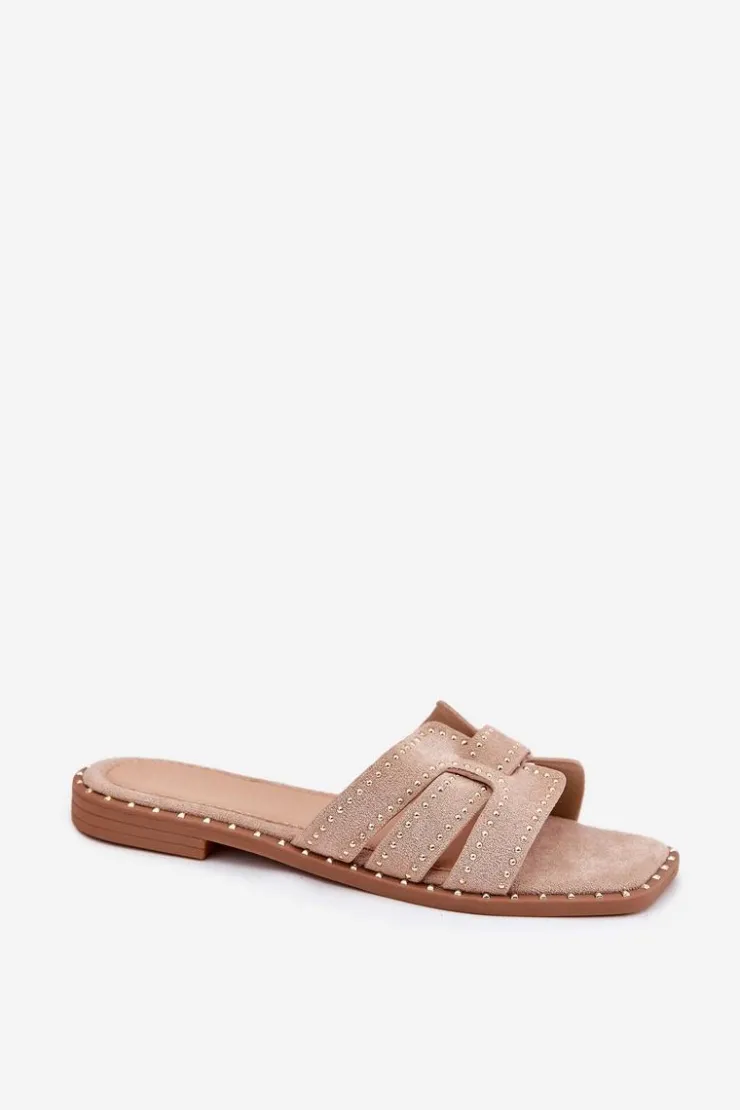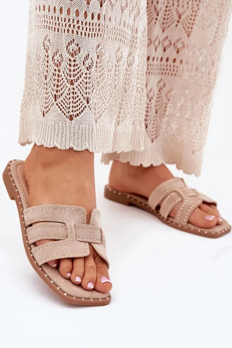 Zdobione klapki damskie wykonane z eko zamszu to elegancka i wygodna propozycja na ciepłe dni. Osadzone na płaskim obcasie, zapewniają komfort przez cały dzień. Subtelne zdobienia przyciągają wzrok, dodając butom wyjątkowego charakteru. Idealne do codziennych stylizacji, łączą funkcjonalność z modnym wyglądem. Przy wyborze rozmiaru prosimy sugerować się tabelą rozmiarów.